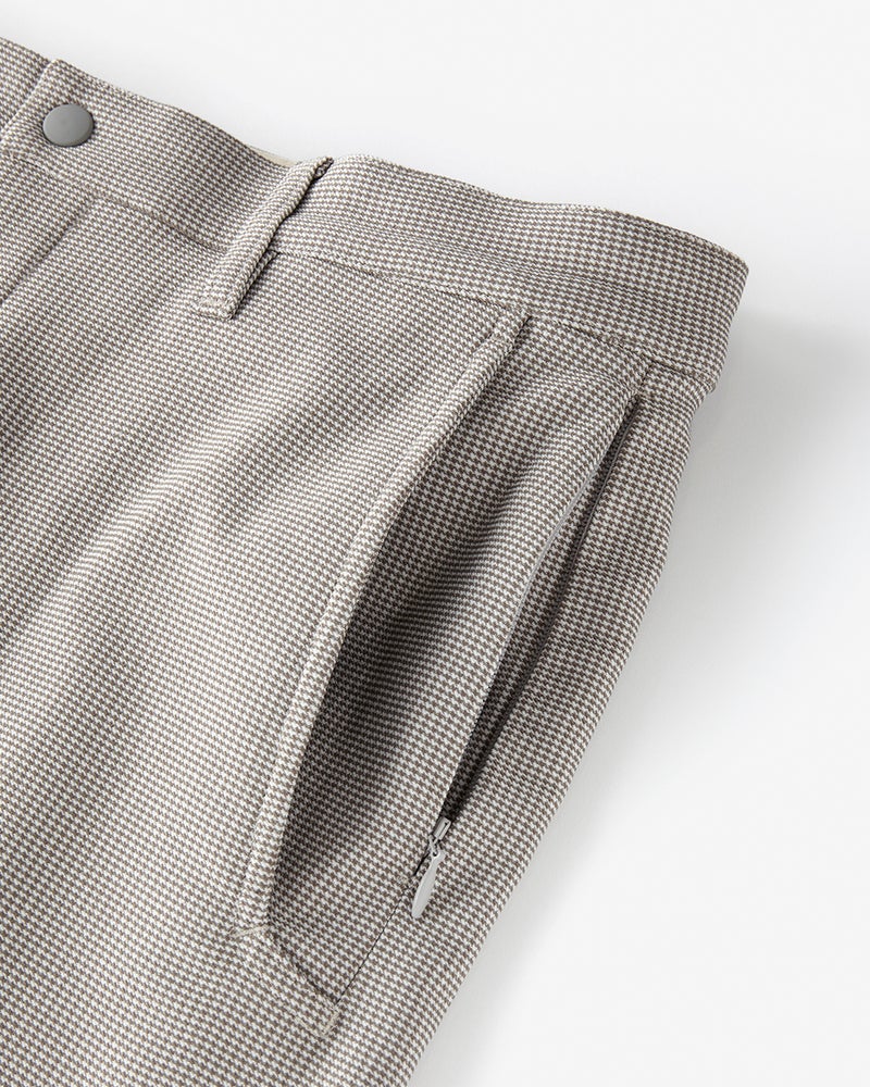 縫い目をなくした設計で、すっきり見えて動きやすい。両サイドにはコンシールファスナーポケットとDカン付き。目立たずしっかり収納できて、充実の機能性です。