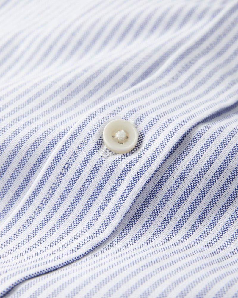 台衿をカーブさせて曲線的に仕上げることで首に沿い、すっきりとした印象に。さらに、同じくカーブをつけた立体設計の背ヨークで、肩と背中もきれいにフィットします。