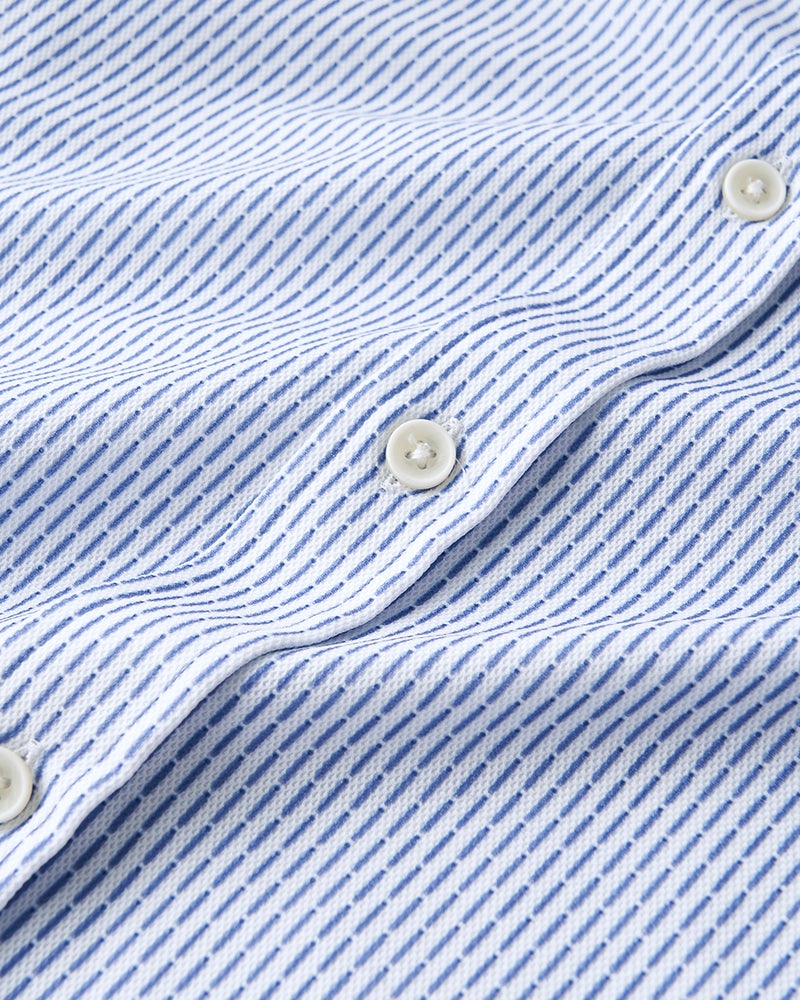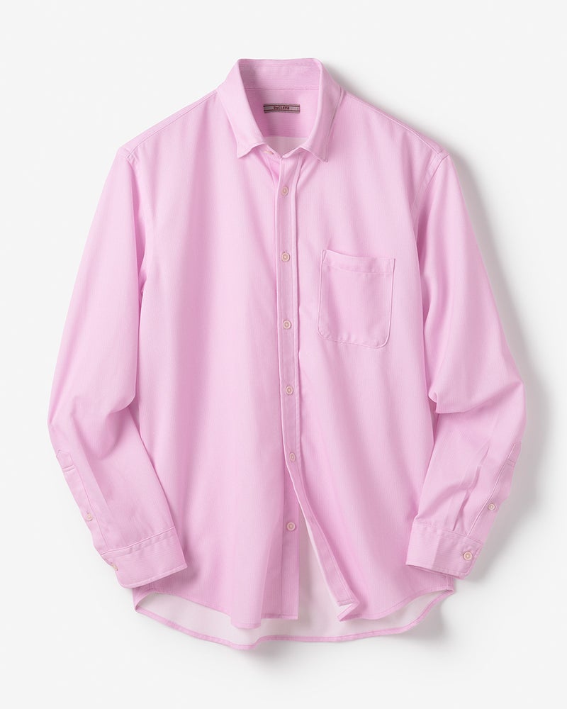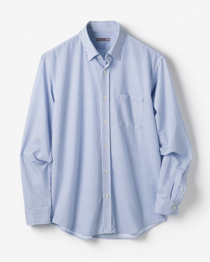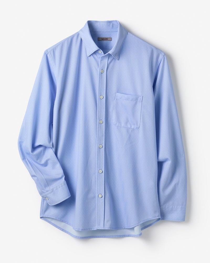 と、6つの機能が詰まった好印象シャツ。着ていて楽ちん、お手入れ楽々。ジャージに見えないドレッシーな生地感です。動きやすくて着くずれしにくいから快適。ビジネスで重宝する色柄が揃っています。