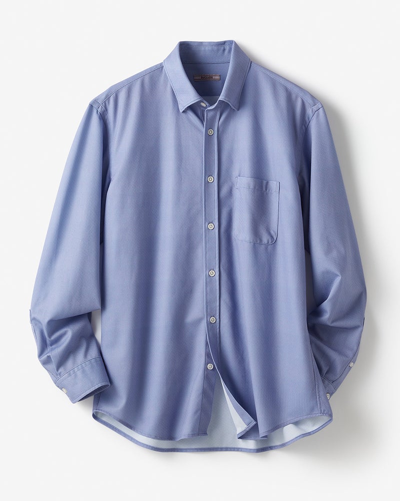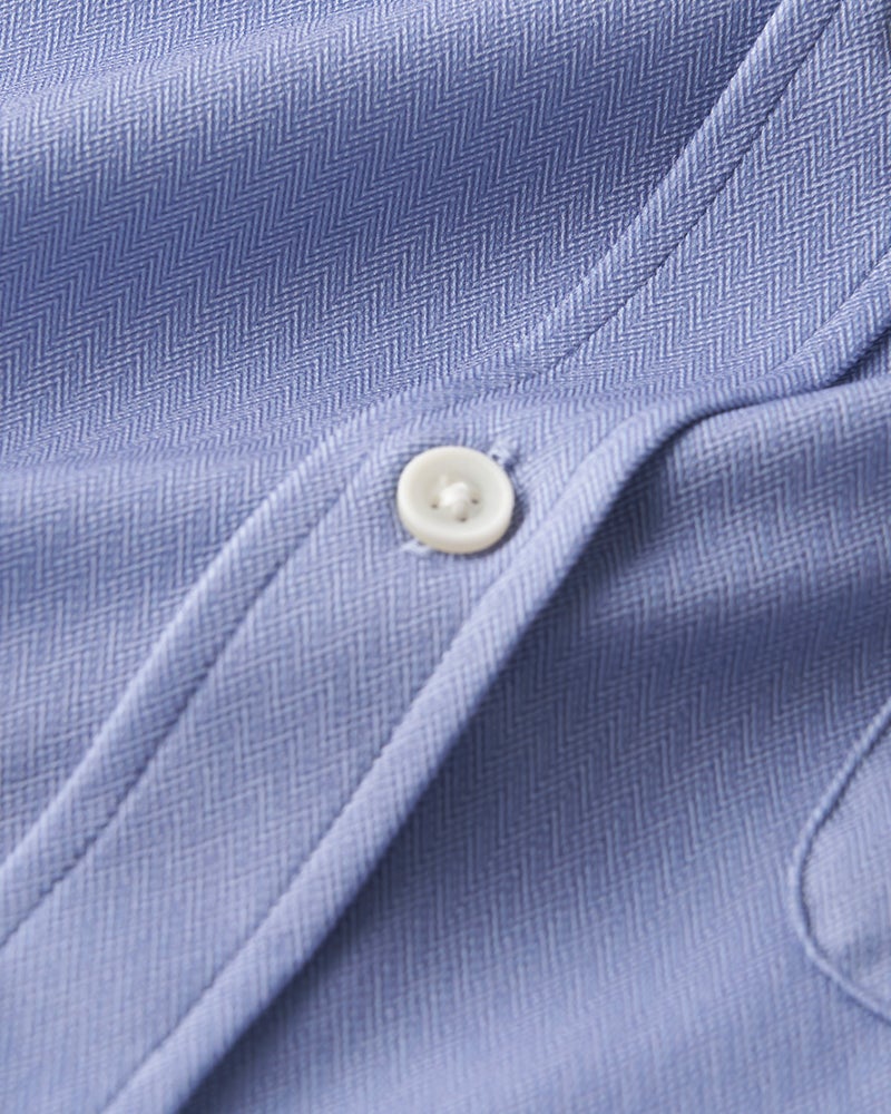 衿先裏に隠しボタンがついたボタンダウン。留めるとボタンが見えず、立体的に衿が立ちます。ボタンが見えないことでカジュアル感を抑えた印象になります。