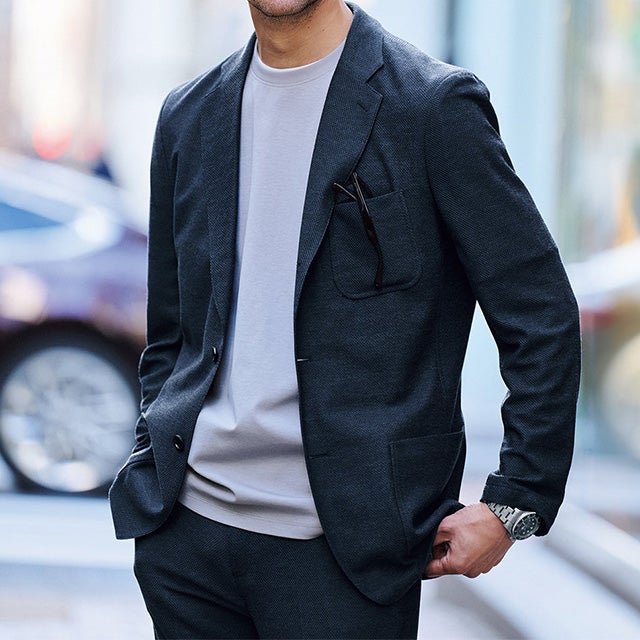 世界に名をはせるカネマサの熟練した技で、ファイブタック編みという凝った編み目に仕上げたジャージ生地。立体感のある唯一無二な質感で、肌離れよく涼しい。360°ストレッチで、防シワ性と吸汗速乾性があります。