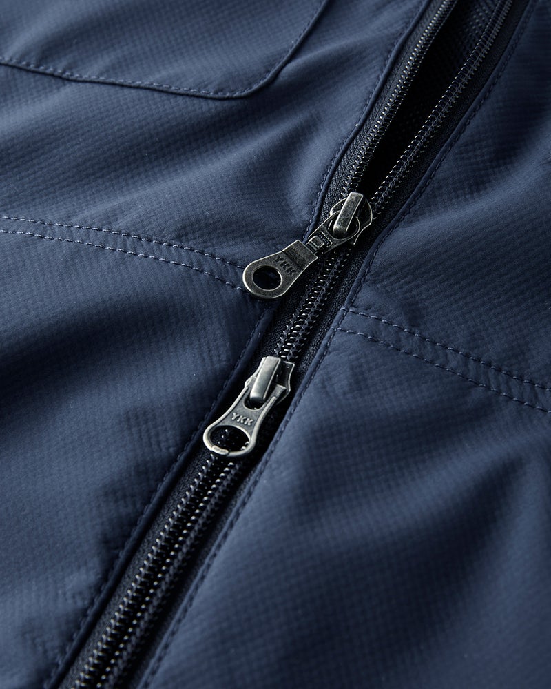 その生地は、撥水性のある表地とメッシュ裏地の2層構造。メッシュ裏地と表地が透湿性を発揮し、湿気を外へ排出。表地が雨・雪・風をしっかりブロック。