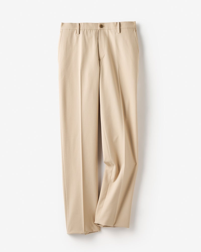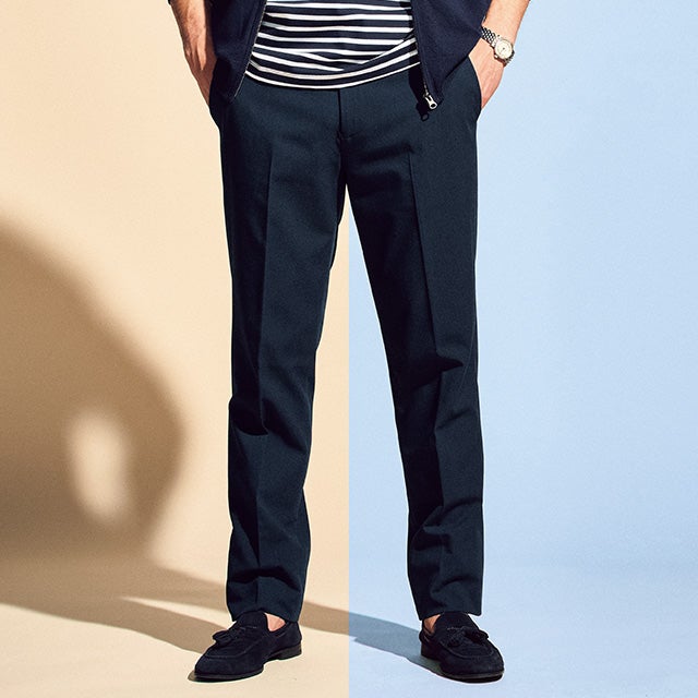 360°自在に伸びる人気パンツに、新開発のオリジナル生地「Doテンプコントロール」を採用。生地に組み込んだマイクロカプセルが温度に反応して、常に適温にコントロールするので、年中快適にはけます。膝から裾にかけてややテーパードさせたすっきりシルエット。センタープレス入りです。