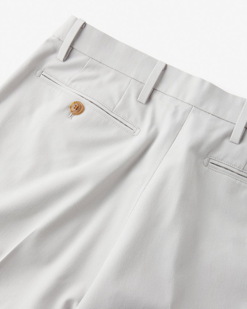 パリッとした生地感だから、ビジネスカジュアルにも重宝します。