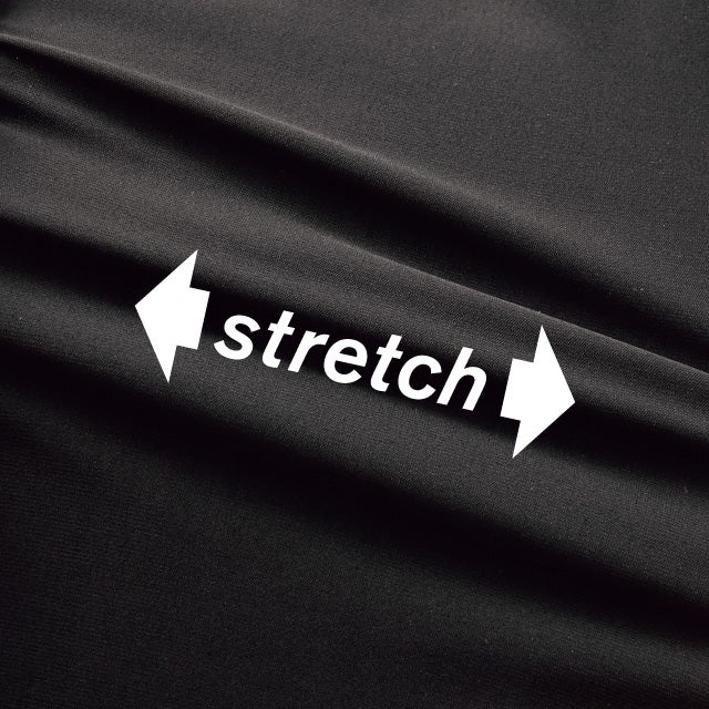 • 360°ストレッチする生地は、吸汗速乾性と形態安定性のあるトリコットジャージ素材で、シワになりにくく、洗濯機で洗えるからお手入れが楽です。ジャージとは思えない上質感とハリがあり、シルエットが美しく出ます。