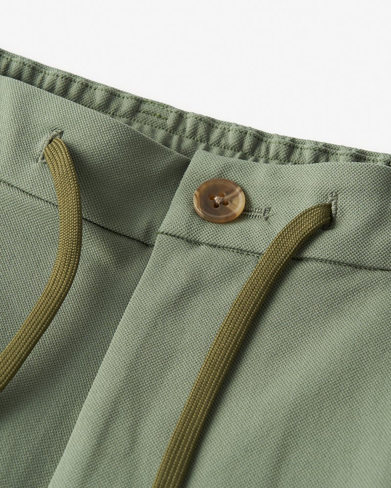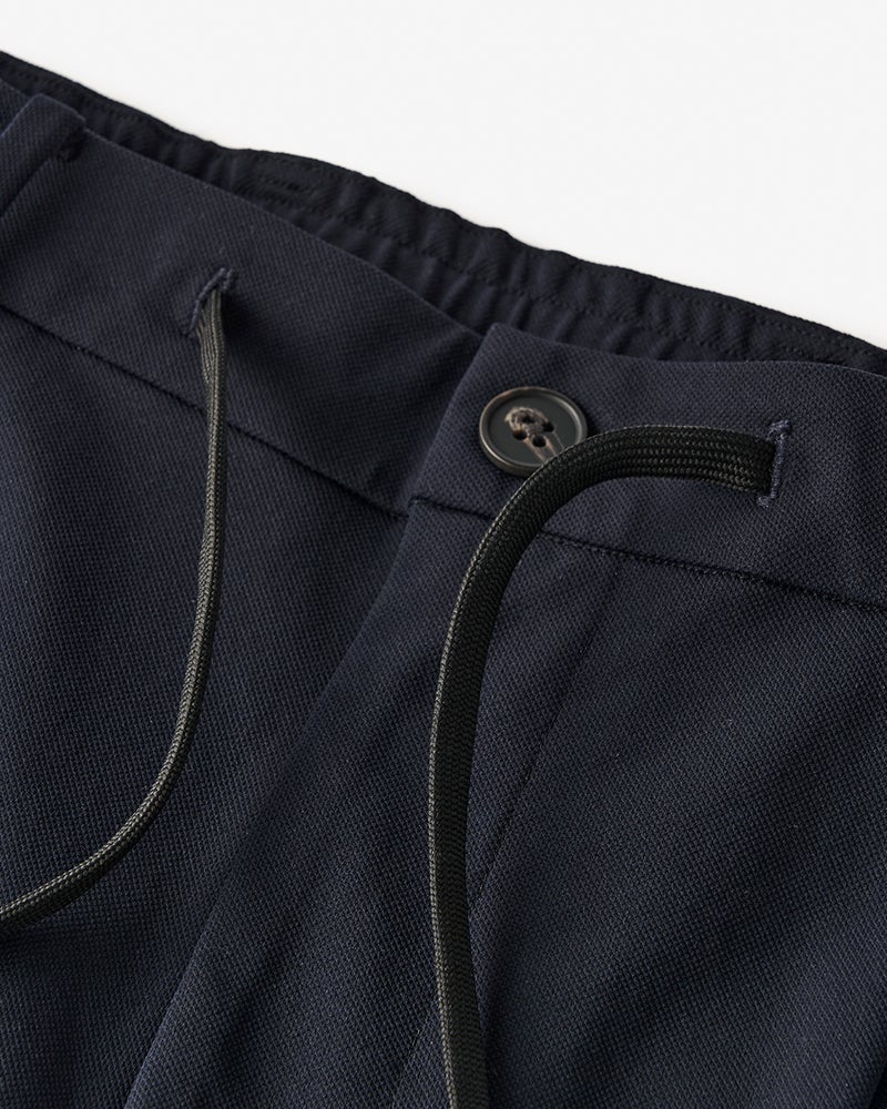 ドローストリングの紐は、内側でも外側でも結べる仕様で、ベルトレスOK。