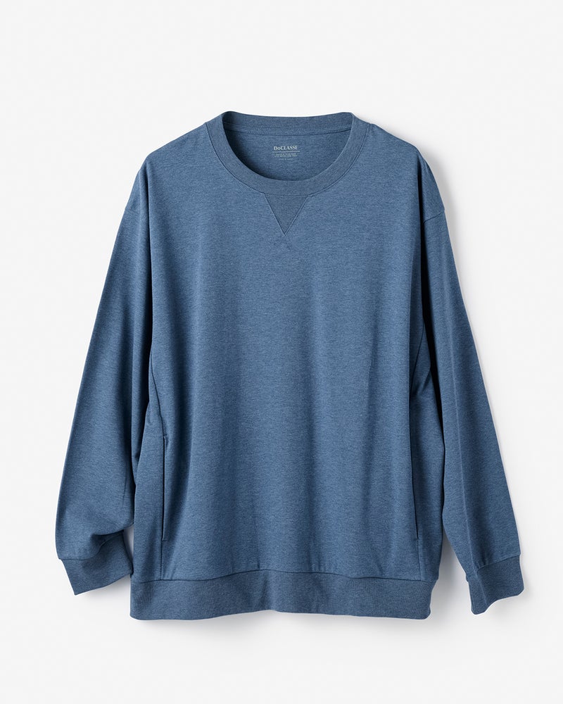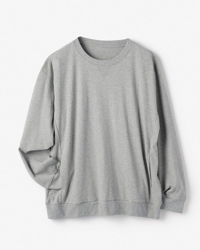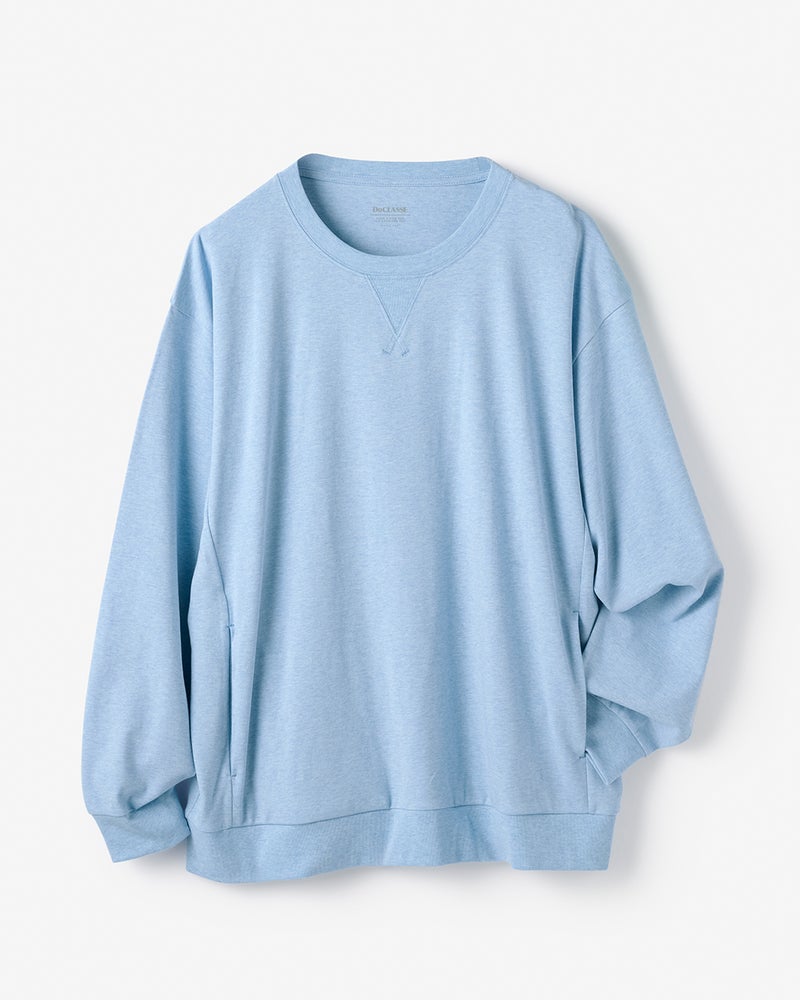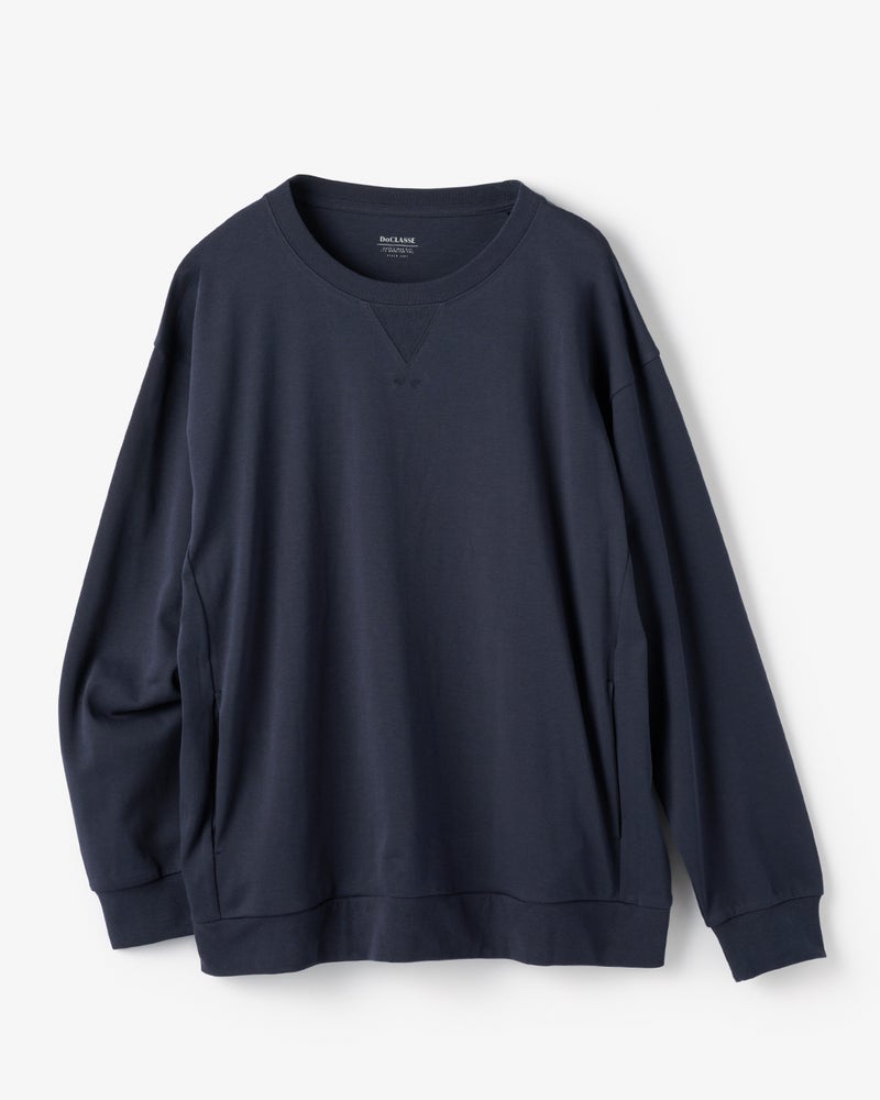 上質な超長綿100%の、なめらかな肌触りと艶やかな生地感が人気の「Do-T」と同じ生地を使用した長袖スウェット。抗菌防臭機能付きです。