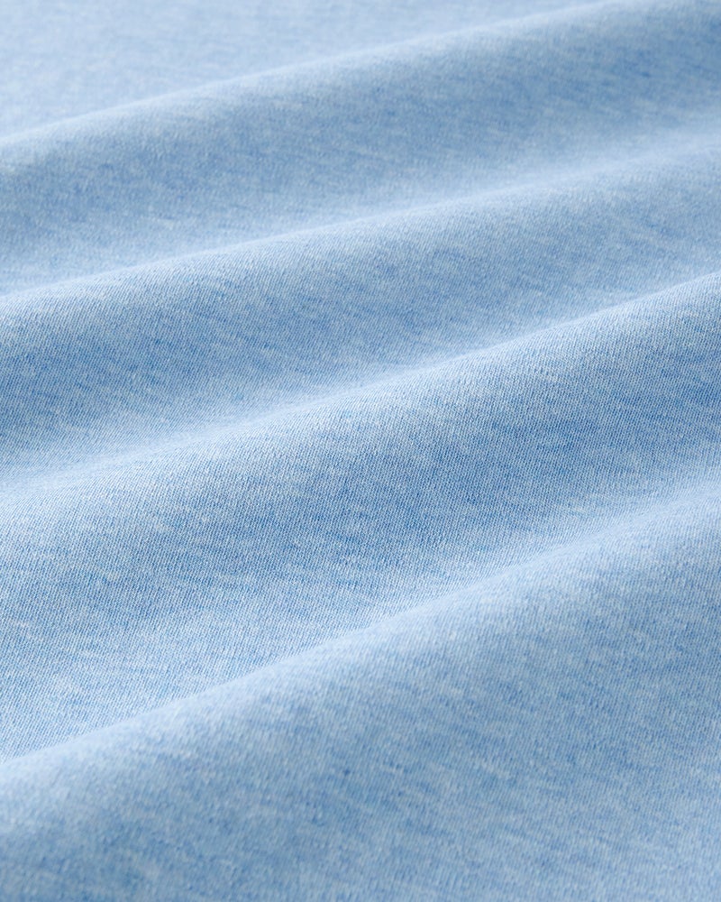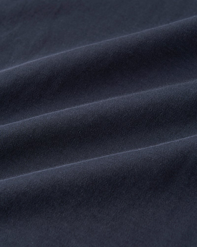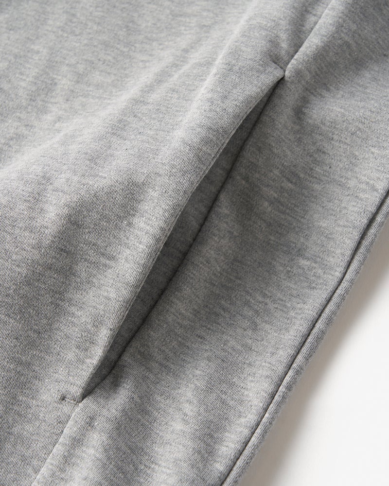 軽いTシャツ生地で、スウェットのデザイン。やや大きめのサイズ感。両サイドには便利なポケット付きです。