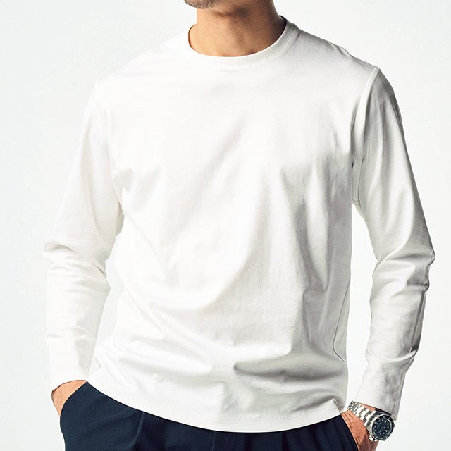 ジャケットづくりのテーラード技術を駆使して仕立てたTシャツ。ジャケットの中に着て、もたつかず、1枚で着てもすっきり着こなせます。