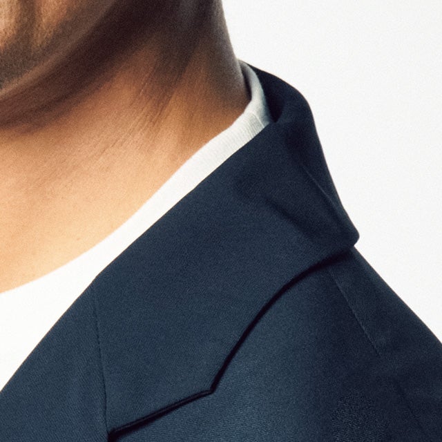 技③:上品素材32ゲージというきめ細やかなポンチ素材を使用。ジャケットに合う艶のある生地感で、柔らかな肌触りです。
