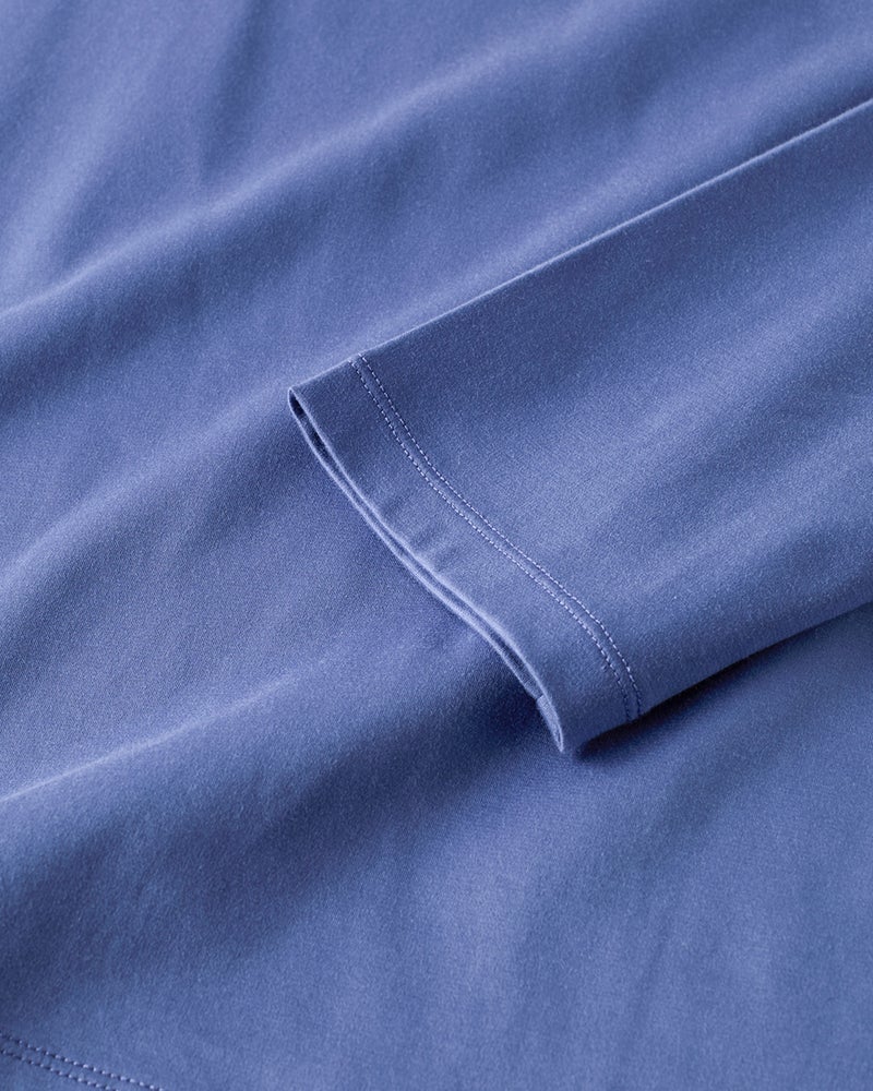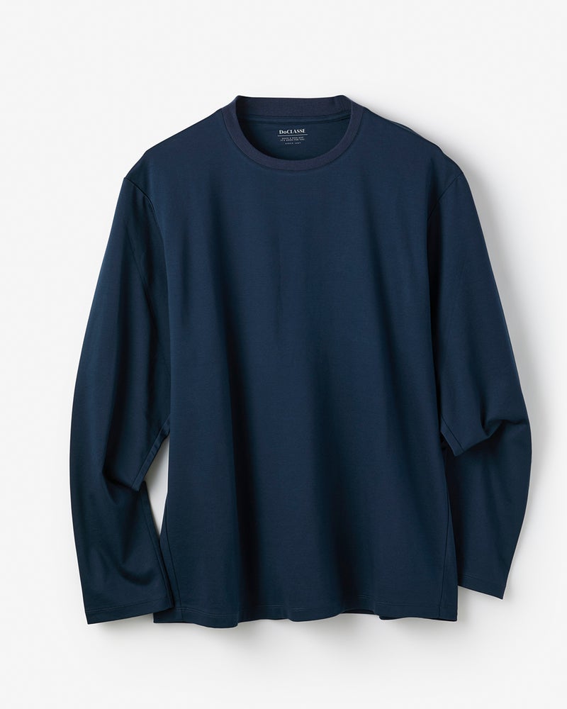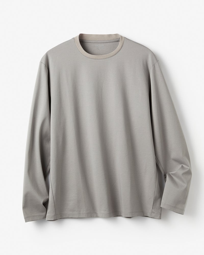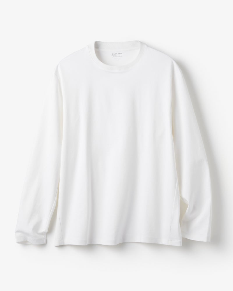 ジャケットづくりのテーラード技術を駆使して仕立てたTシャツ。ジャケットの中に着て、もたつかず、1枚で着てもすっきり着こなせます。