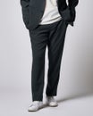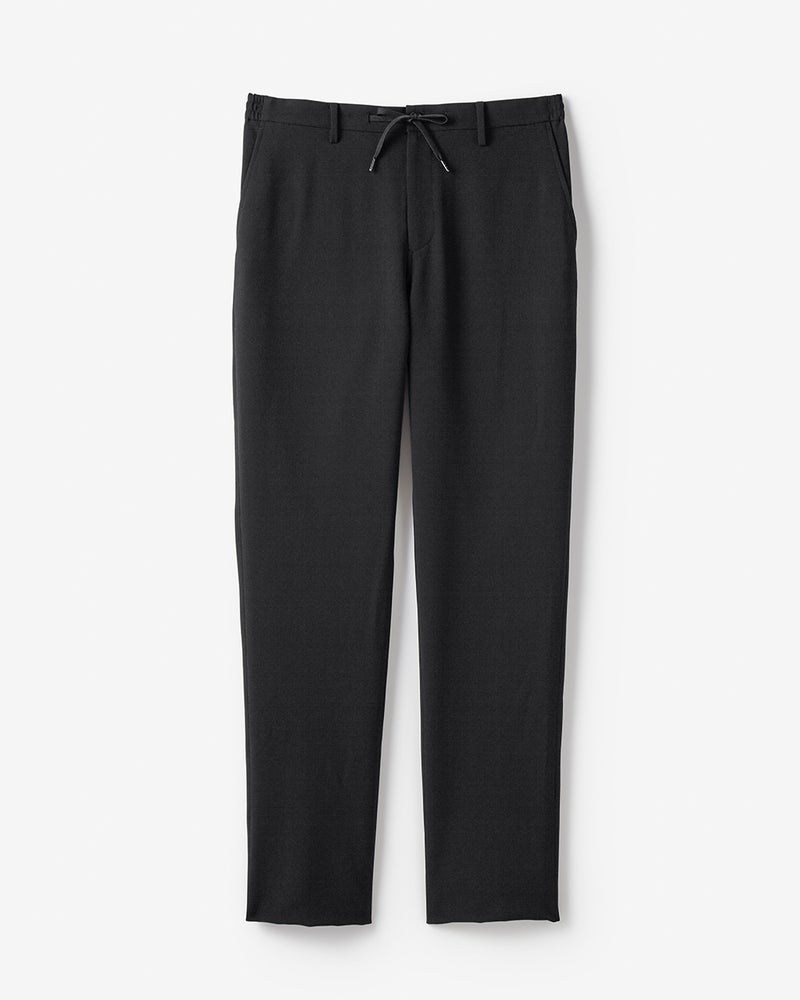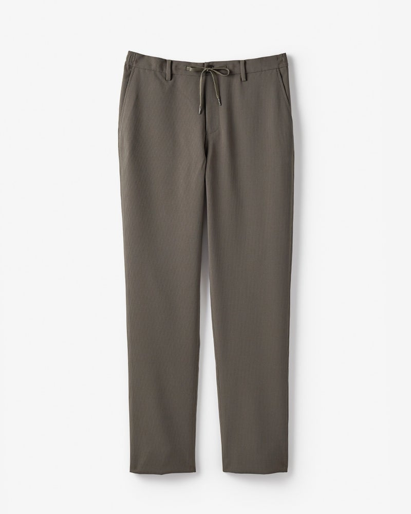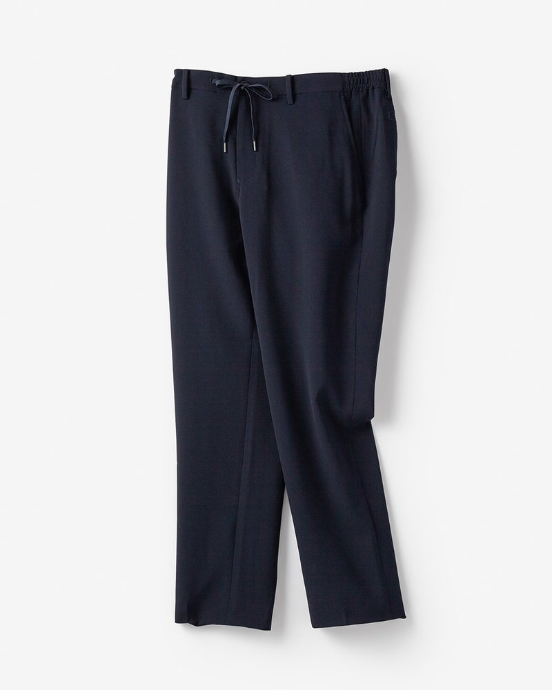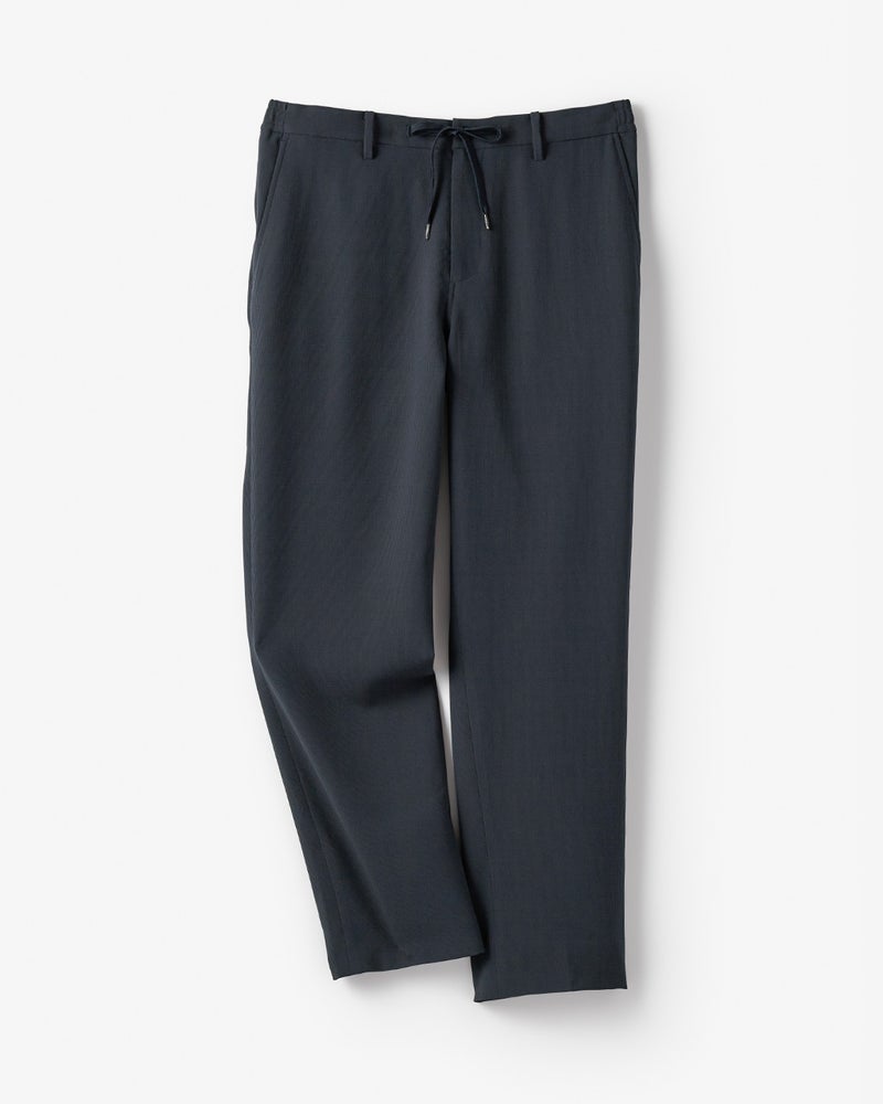 ジャケットとセットアップ着用できるイージーパンツ。ヒップやわたり幅は適度にゆとりがあり、膝下をやや細くすることで、リラックスしたはき心地でも、シルエットがすっきり見えるように仕上げています。