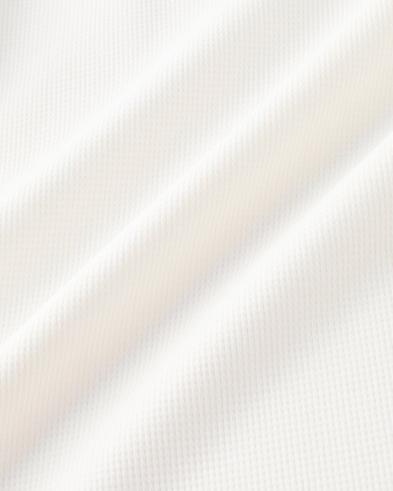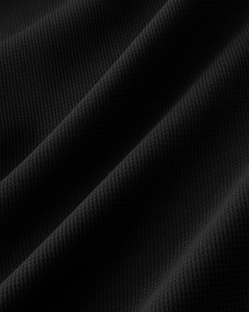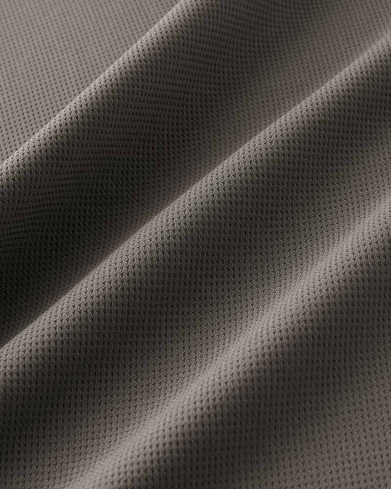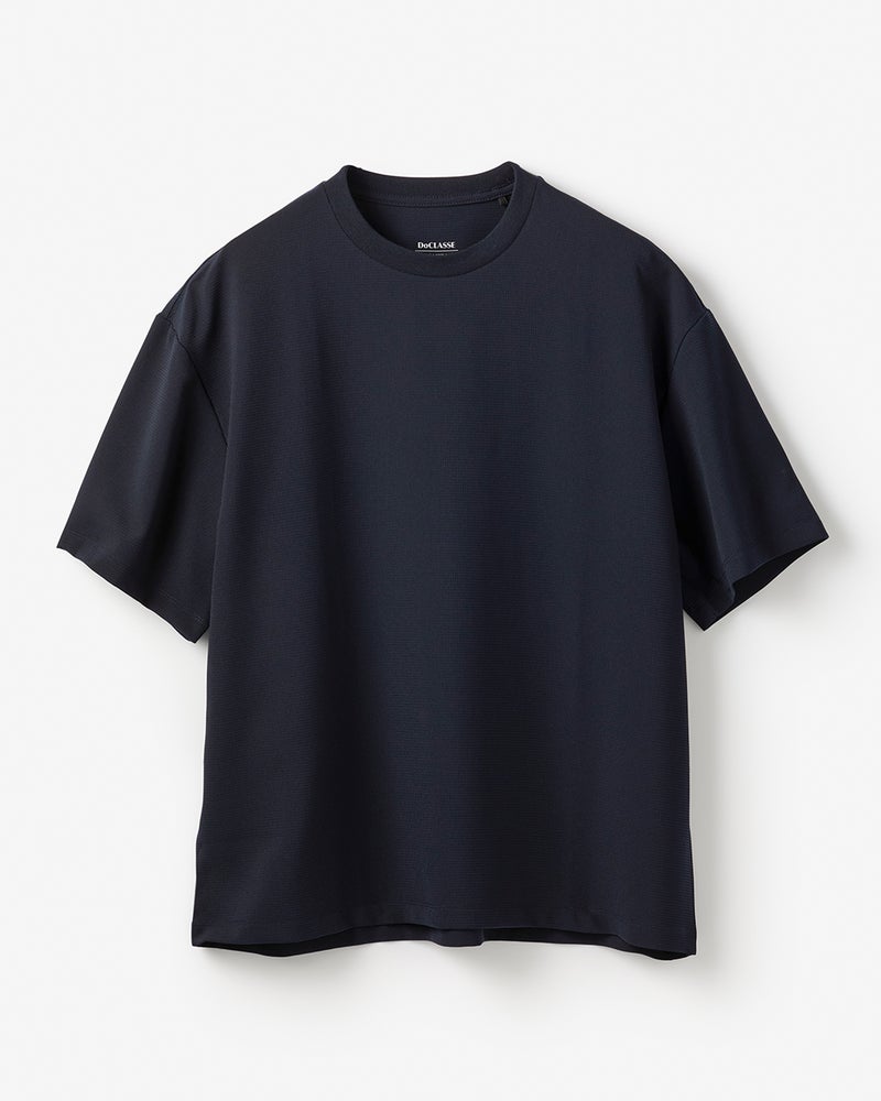 ハニカム調の凹凸のあるドライタッチの生地は、360°伸びる快適素材です。織物だからきちんと見えて、シワになりにくく、型くずれもしにくい。今年の生地は薄く軽くなってますます快適に。トレンドのゆったりサイズに進化しました。