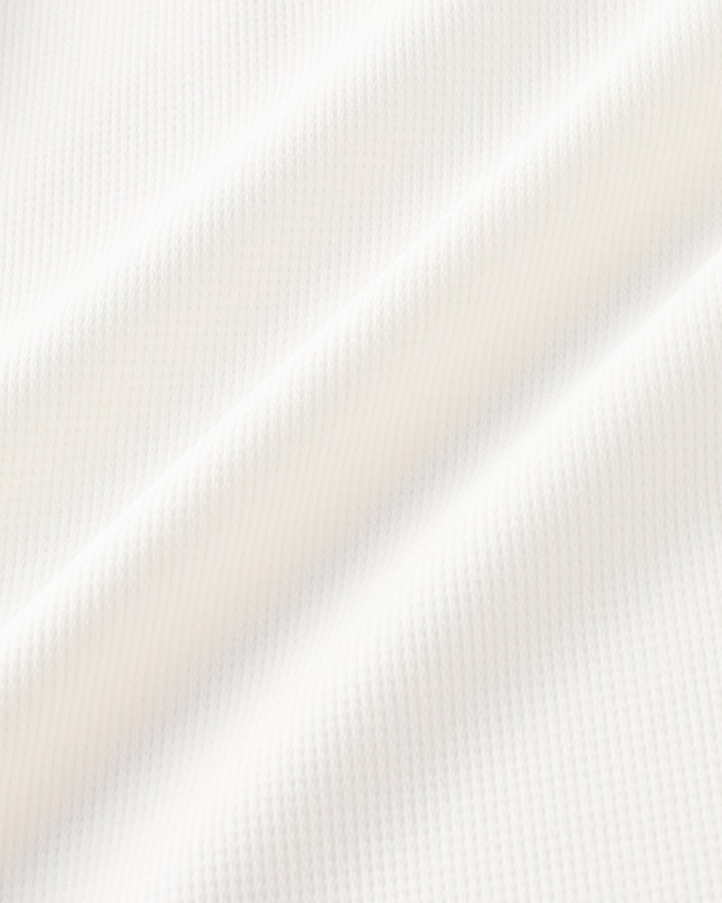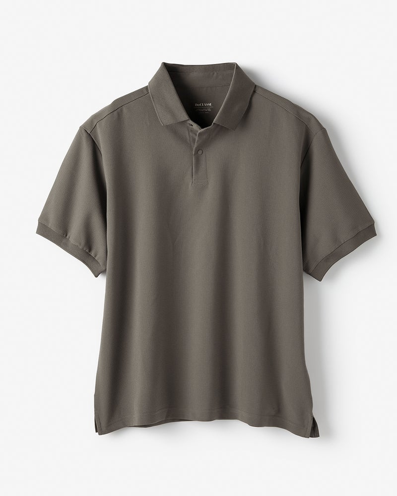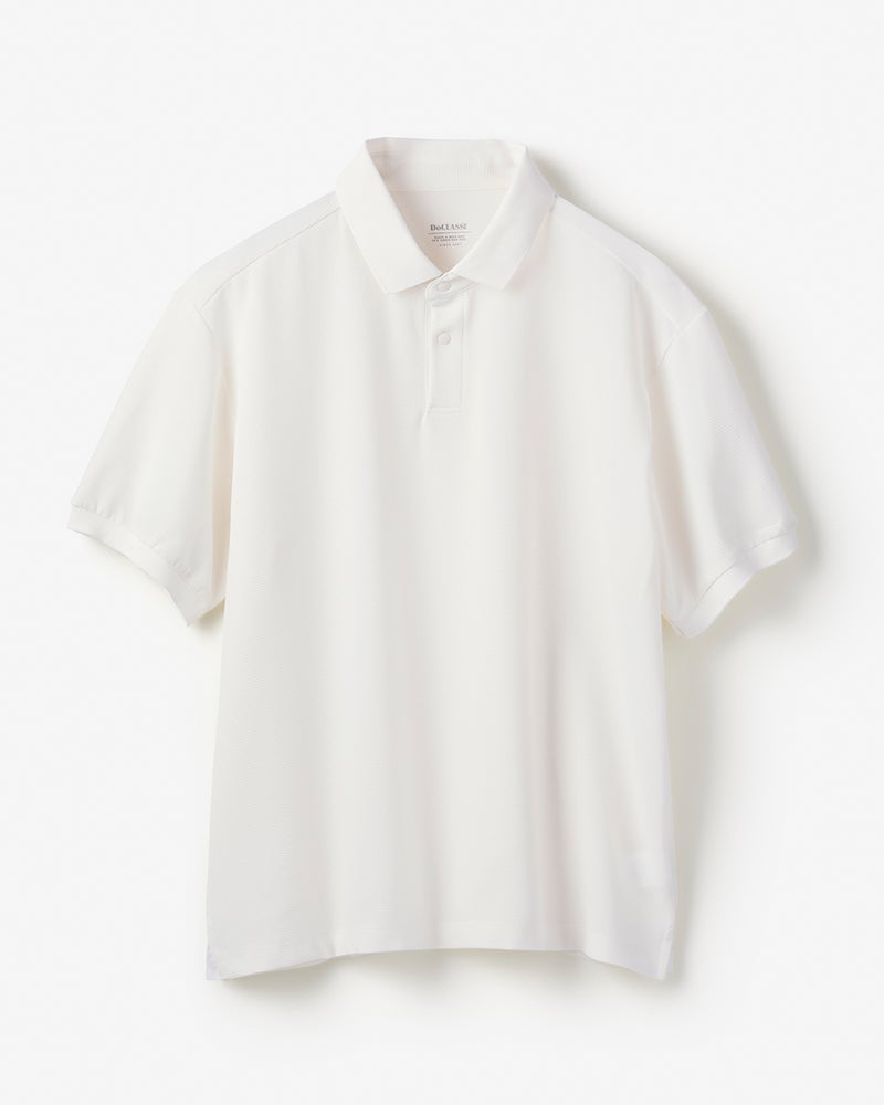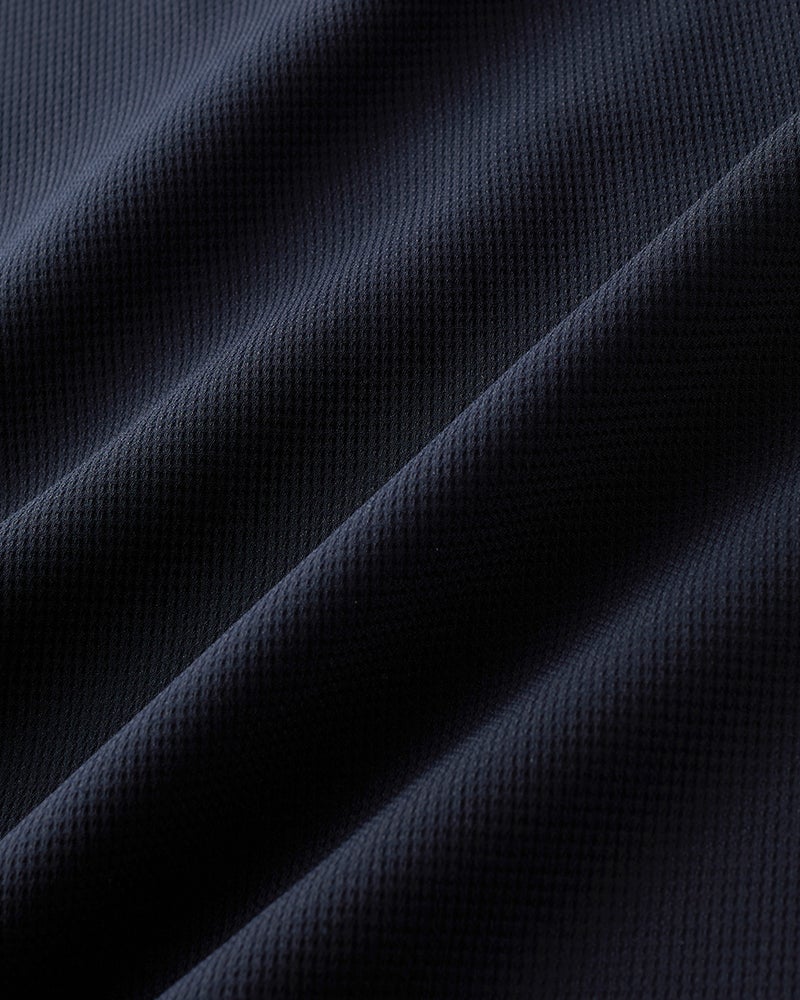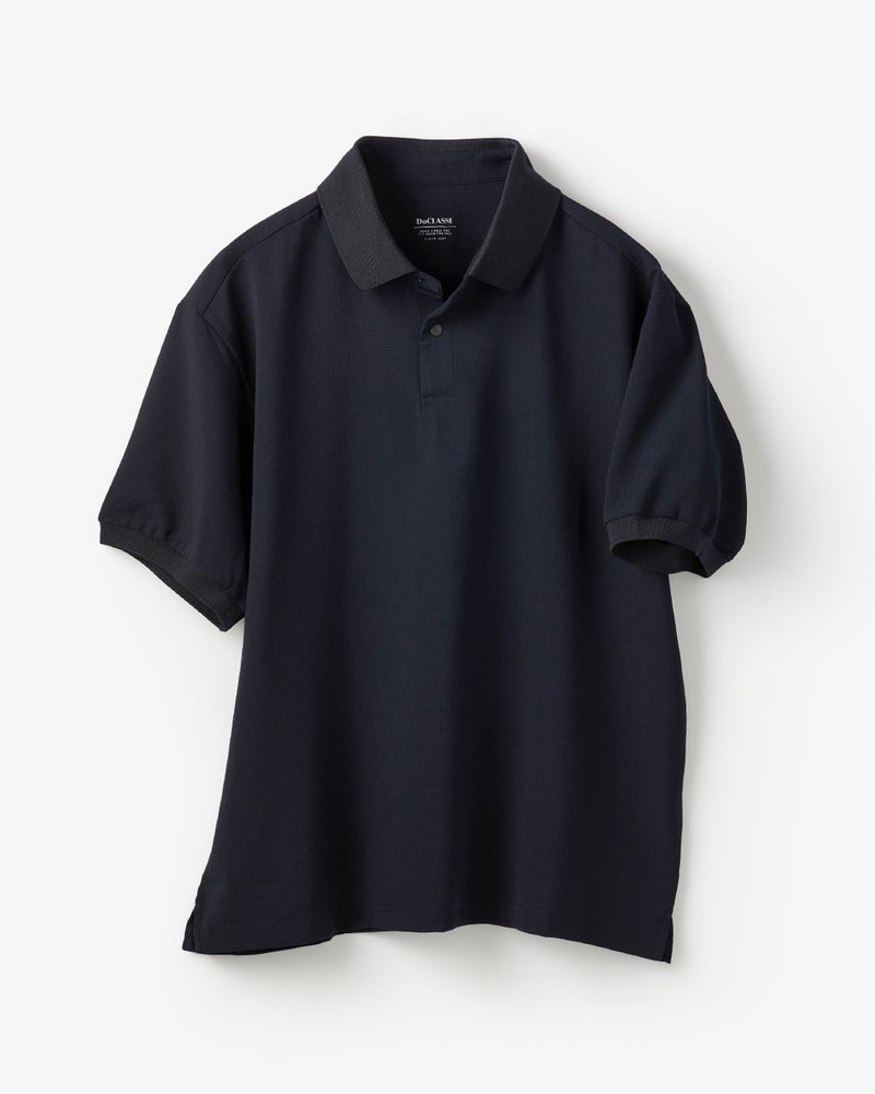 ハニカム調の凹凸のあるドライタッチの生地は、360°伸びる快適素材です。織物だからきちんと見えて、シワになりにくく、型くずれもしにくい。今年の生地は薄く軽くなってますます快適に。トレンドのゆったりサイズに進化しました。