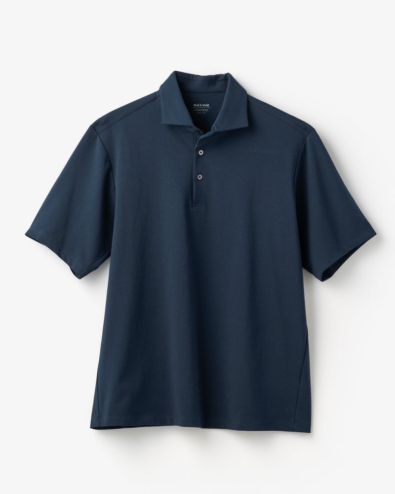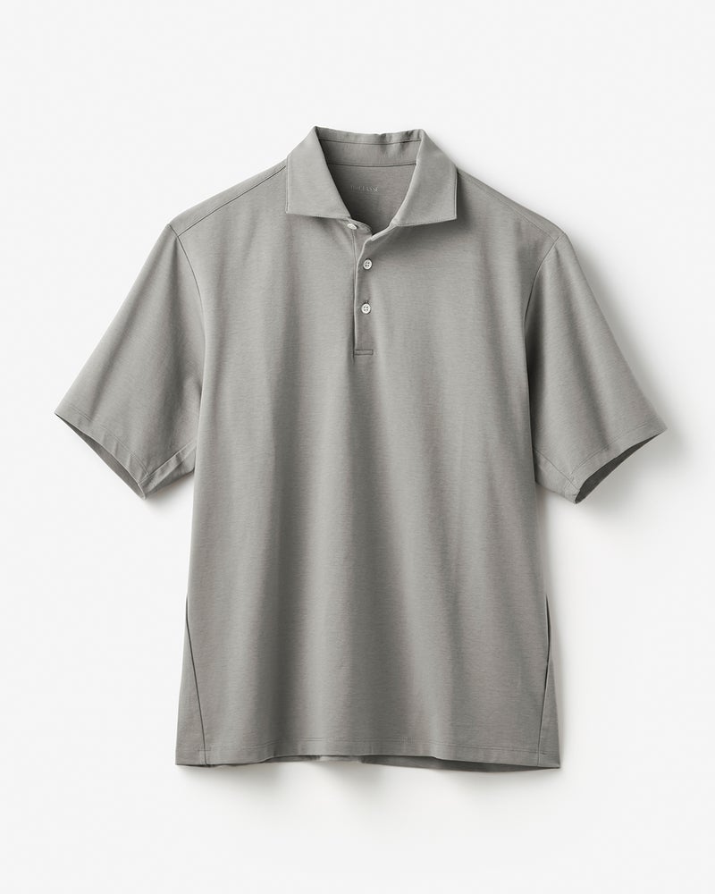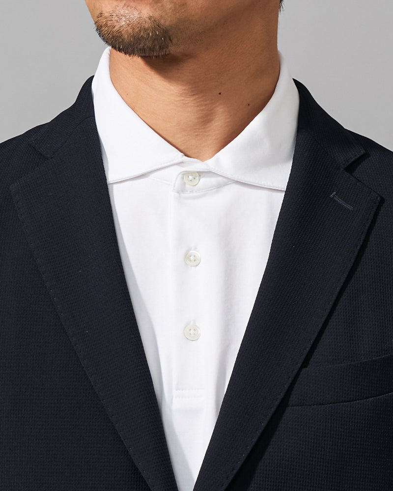 ジャケットづくりのテーラード技術を駆使して仕立てたポロシャツ。立体的に作ったアームホールに対して袖を前振りに設計。ジャケットの中でもたつかず、1枚で着てもすっきり着こなせます。