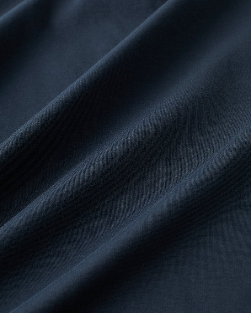32ゲージというきめ細やかなポンチ素材を使用。ジャケットに合う艶のある生地感で、柔らかな肌触りです。ほどよい光沢が上品。