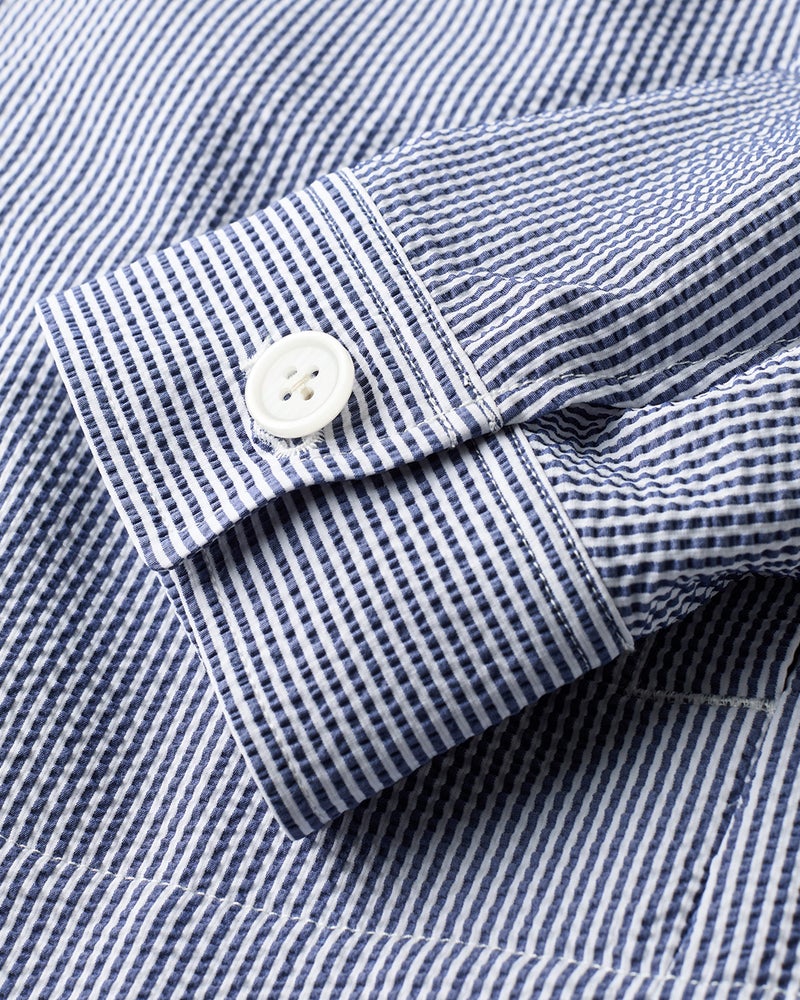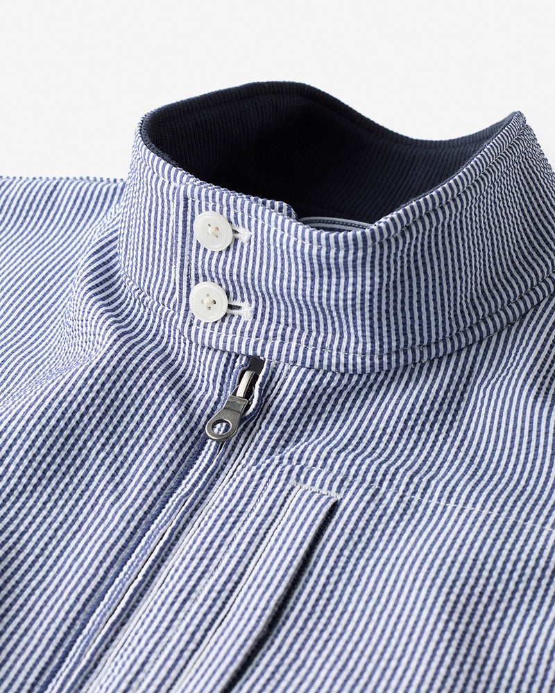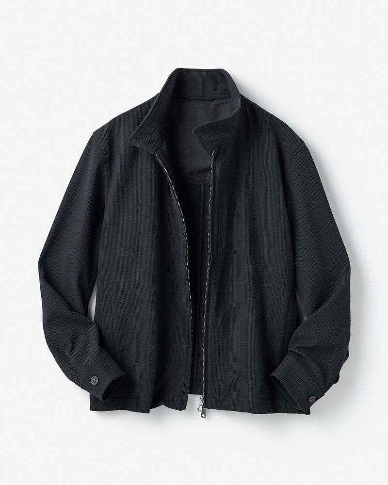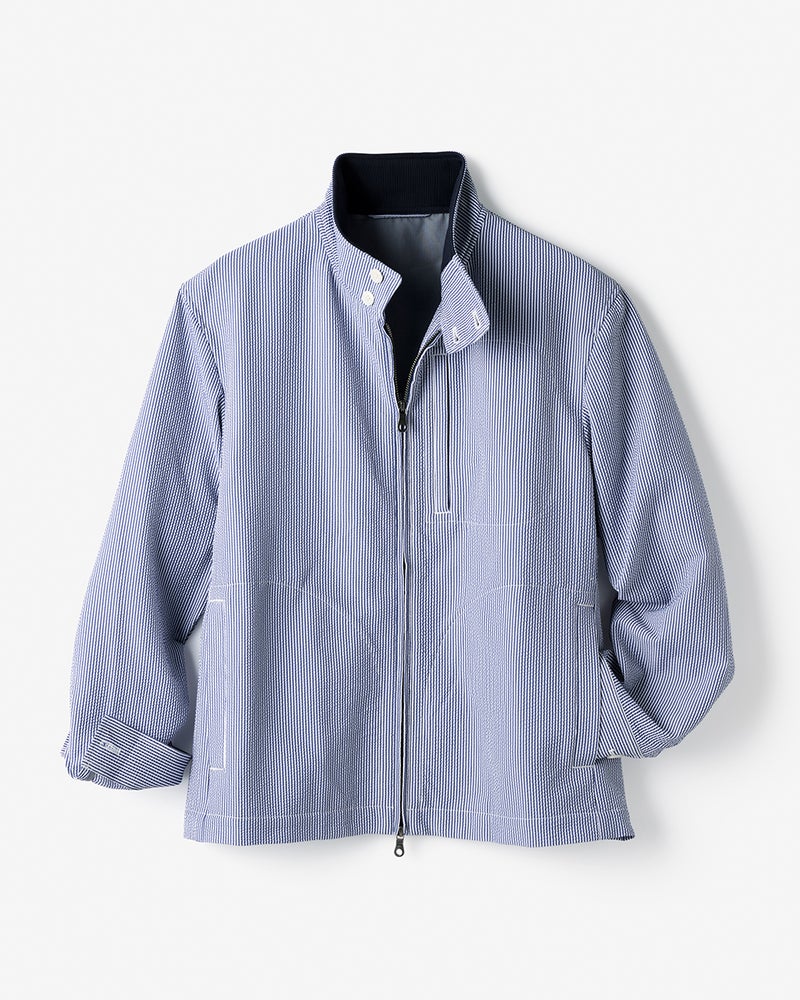 現在のブルゾンの原型といわれる名品のデザインをベースに、シアサッカー生地で爽やかに仕立てました。大人がすっきり見えるシルエット。凹凸のある組織がもたらす清涼感。吸汗速乾性もあり、抜群に動きやすい360°ストレッチです。
