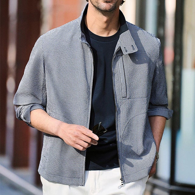 • 現在のブルゾンの原型といわれる名品のデザインをベースに、シアサッカー生地で爽やかに仕立てました。大人がすっきり見えるシルエット。