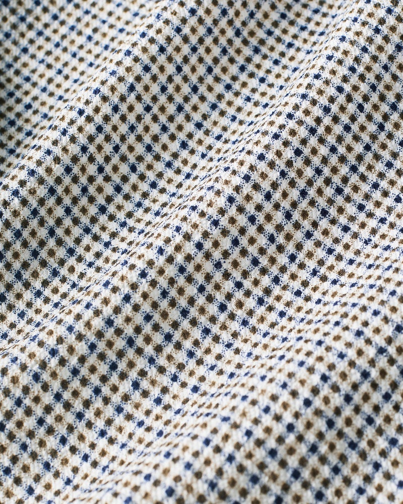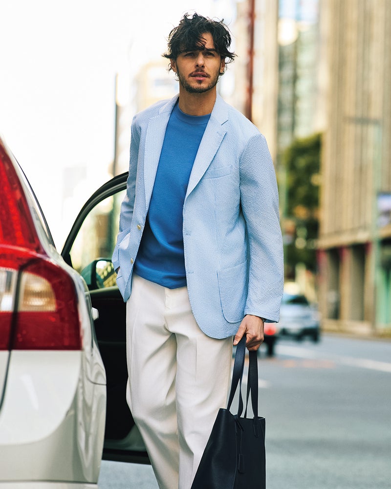 凹凸のある生地で、生地と肌の間に隙間をつくるシアサッカー。そんな涼感素材にストレッチ機能も備わり、快適性を極めた1着が完成しました。シルエットはA体とAB体の展開で、細身からがっちり系まで自分の体型に合わせて選べるようになっています。