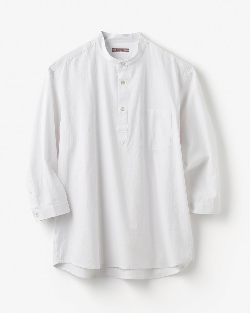 シャツはコットンに、リネンとクールマックス素材を混紡して制作。通気性と速乾性に優れた素材同士の掛け合わせで、快適度をグッと向上させています。蒸し暑い日本の夏にぴったりの1着です。