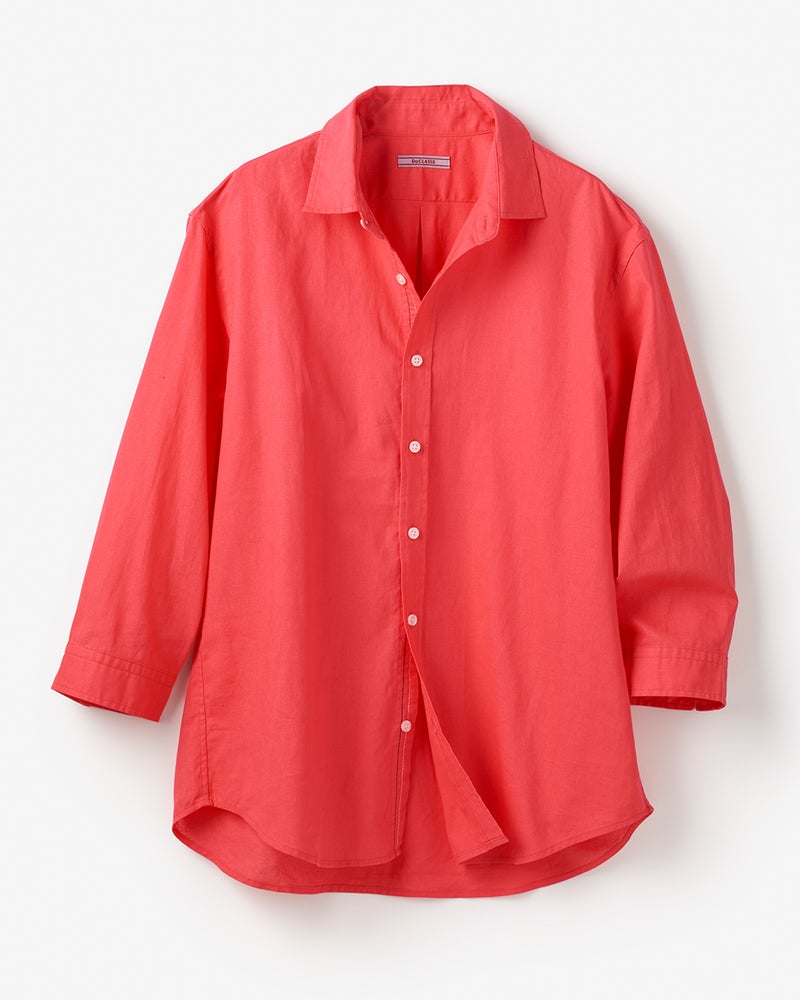 • コットンリネン混ウォッシュ加工シャツ7分袖 詳細画像 コーラルレッド 1