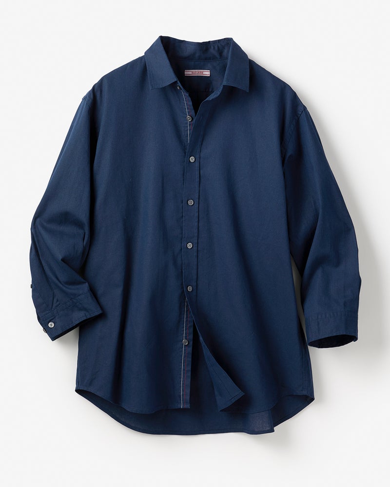 • コットンリネン混ウォッシュ加工シャツ7分袖 詳細画像 ネイビー 1
