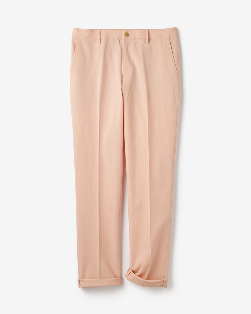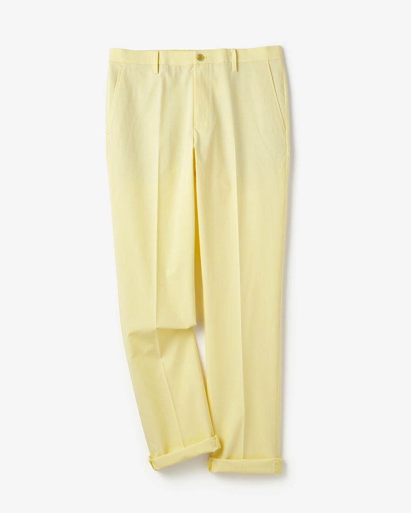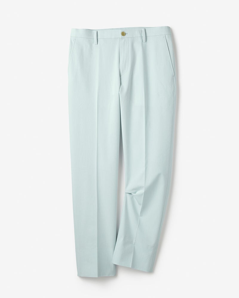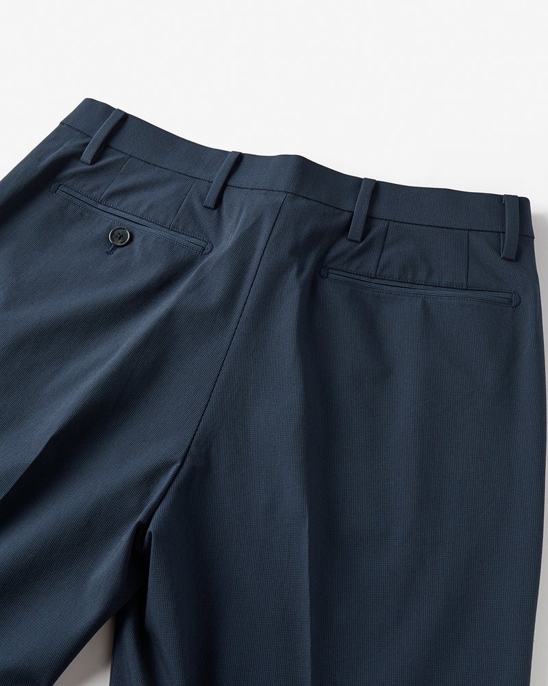 アーバンシーンに溶け込む美脚テックパンツ。接触冷感のテックパンツというと、ギア感が強く出てしまいがちですが、この「アイステックス」シリーズは一味違います。それはシルエットがキレイで野暮ったさがゼロだから。裾がやや細めのテーパード、腰まわりゆったりのワンタックストレート、すっきり見えのノータックストレートの3種類、どれもラインの美しさにとことんこだわって設計しています。
