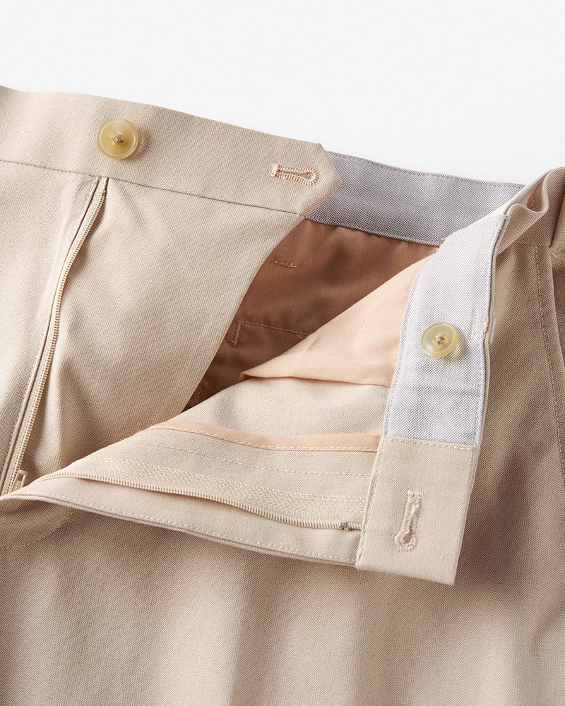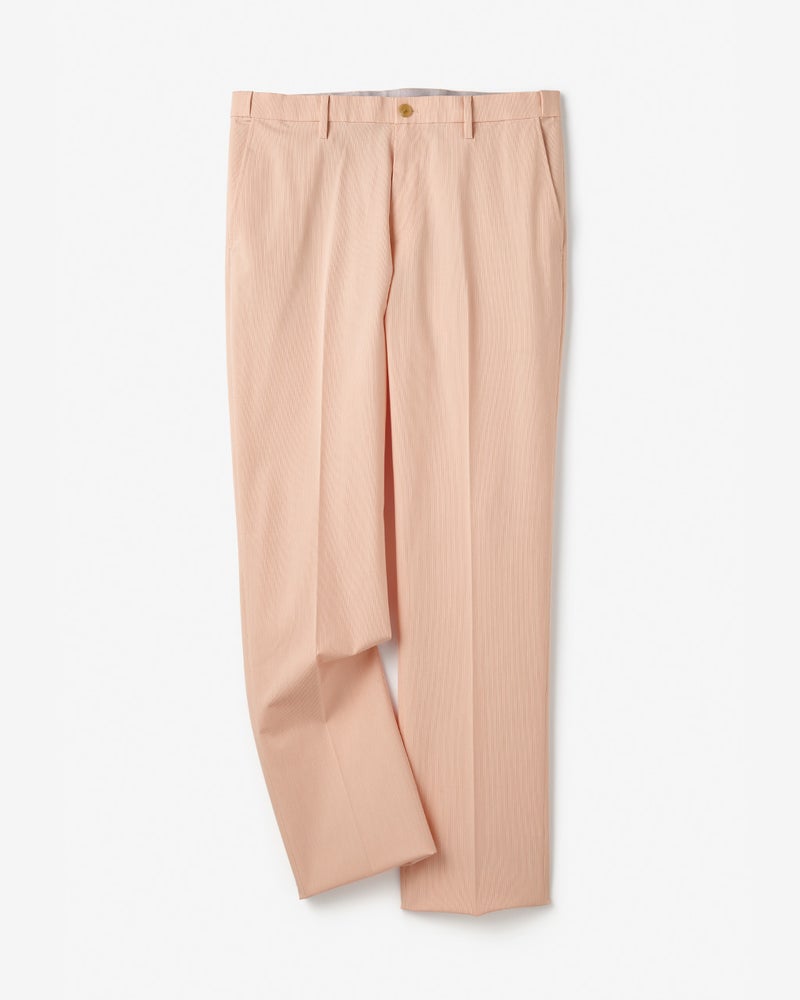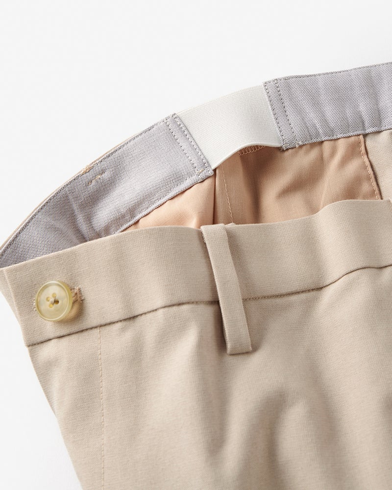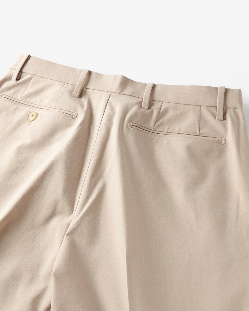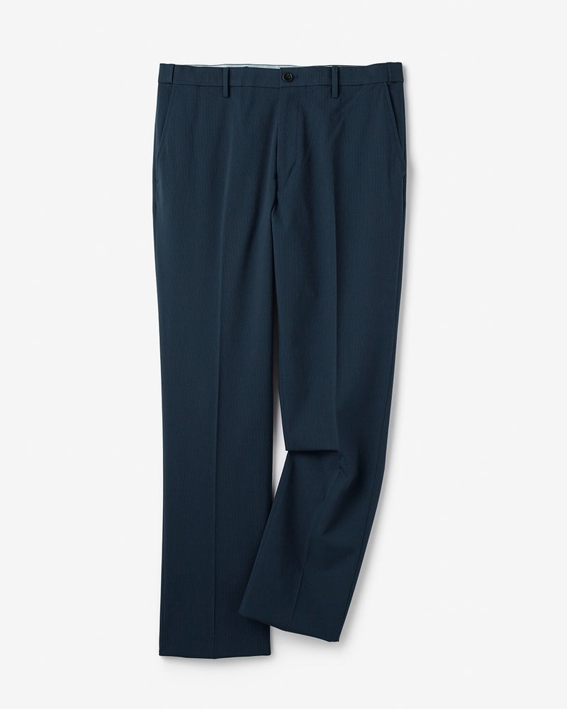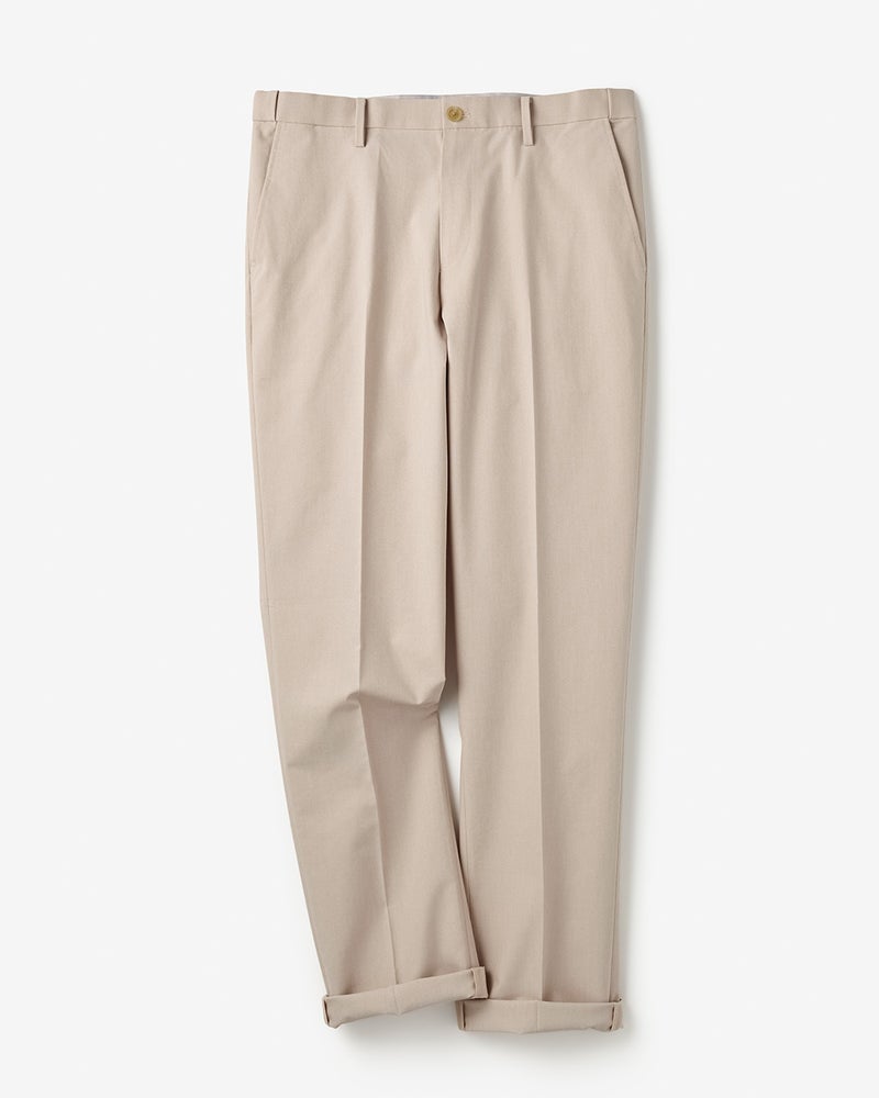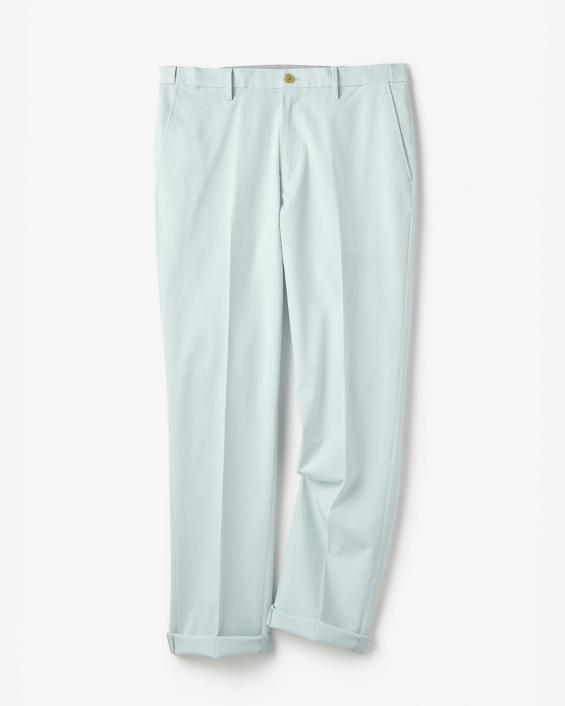 アーバンシーンに溶け込む美脚テックパンツ。接触冷感のテックパンツというと、ギア感が強く出てしまいがちですが、この「アイステックス」シリーズは一味違います。それはシルエットがキレイで野暮ったさがゼロだから。裾がやや細めのテーパード、腰まわりゆったりのワンタックストレート、すっきり見えのノータックストレートの3種類、どれもラインの美しさにとことんこだわって設計しています。