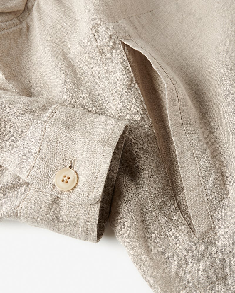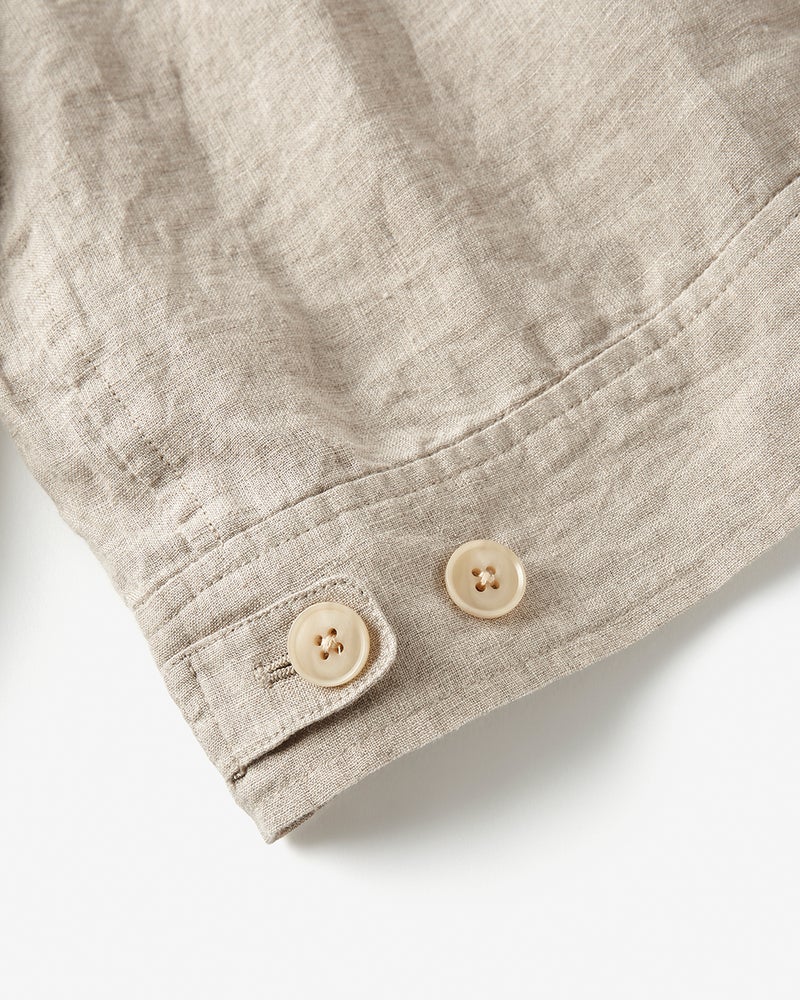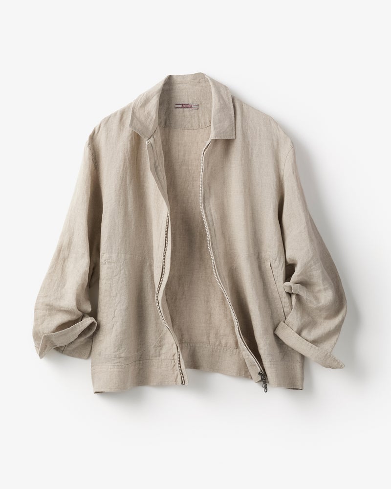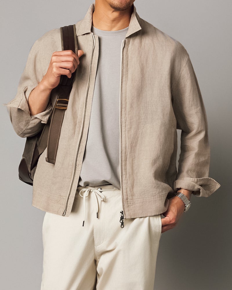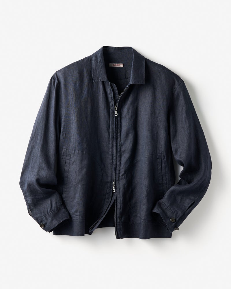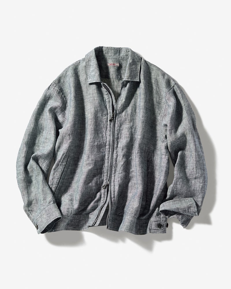 1930年代の英国でゴルフジャケットとして誕生したハリントンジャケットをアップデート。本来の仕様である袖や裾のリブをなくし、素材に上質なヨーロッパ産リネンを採用したことで、リラクシングな仕上がりに。そして洗い加工によるパッカリングがラフなニュアンスをプラス。吸湿速乾性と通気性に優れた羽織りものです。