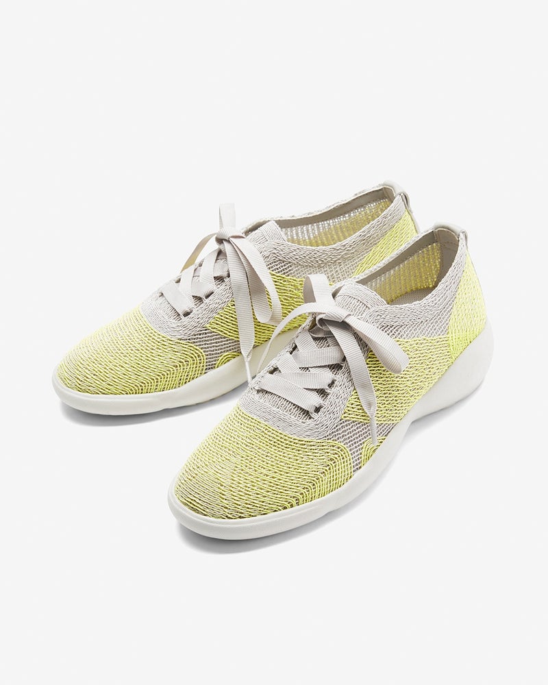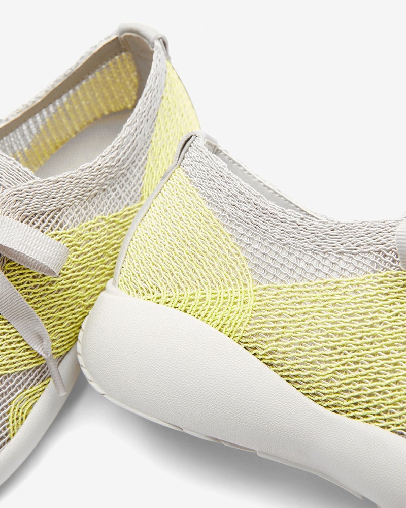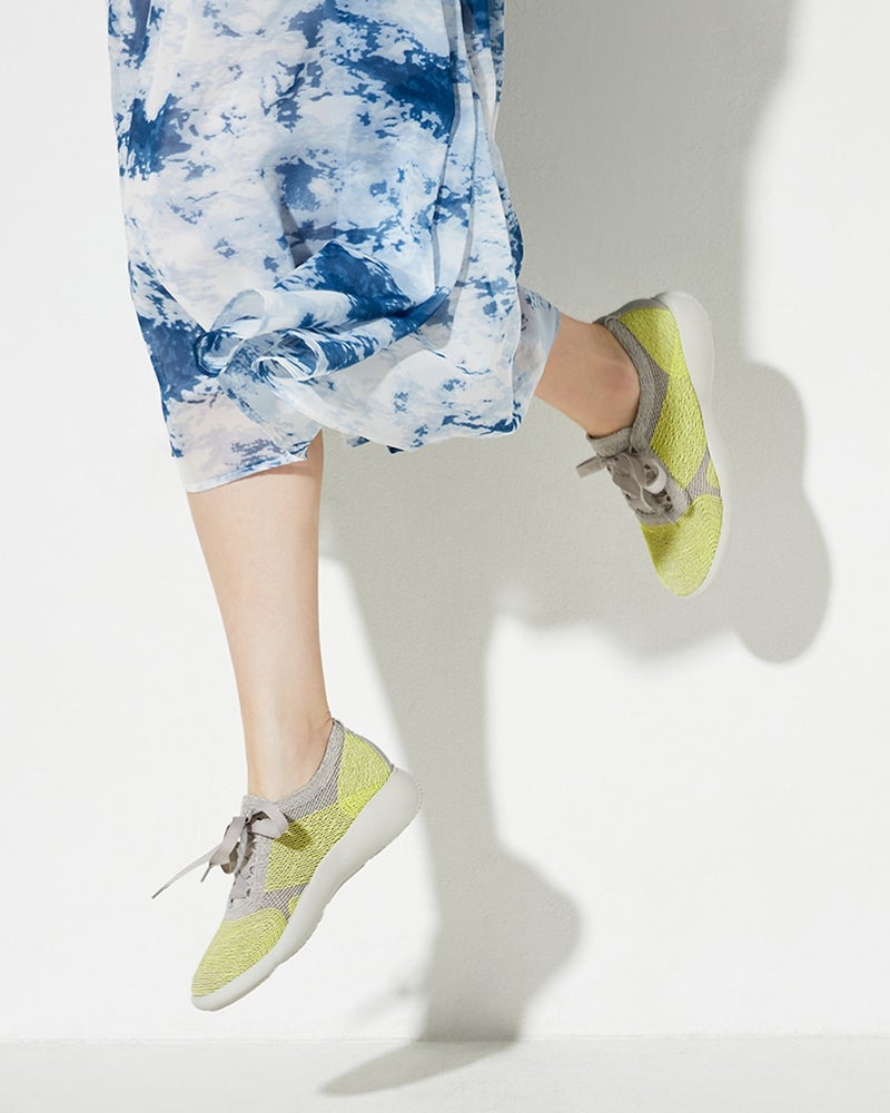 - ブレード刺繍で編み上げられたアッパーは確かに素敵でそれにひかれて購入。履きごこちも良かったです。 但し、スニーカーとしては失格です。23.5 ネイビー。 いわゆるひも部分の下にある「舌(タン)」といわれる部分の材質が固いため、足の甲にぶつかり擦れ、1日履いていたら赤くなりました。短めソックス着用。 足はかかとから着地しつま先でかえります。その時に固い部分と足の甲がぶつかります。 帰ってから、家族の分を含めその部分を研究。ほとんどが柔らかい素材で作られ、中にはスポンジのようなクッションが入っているスニーカーもありました。 地面との着地面は考えていても、スニーカーメーカーではないので、こんなこともあるんだと思いました。 目下、廃棄か、「タン」の部分を裁ちばさみで短く切ってしまうか考慮中です。