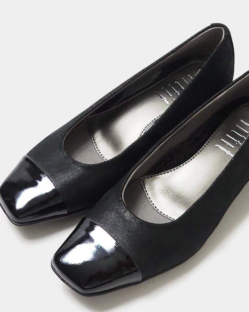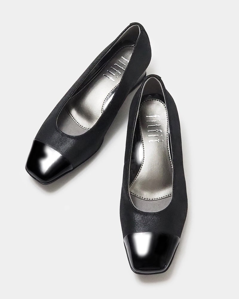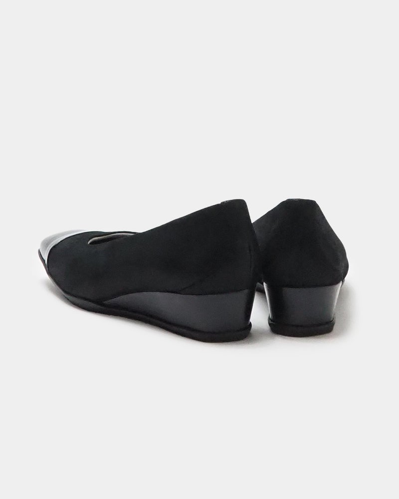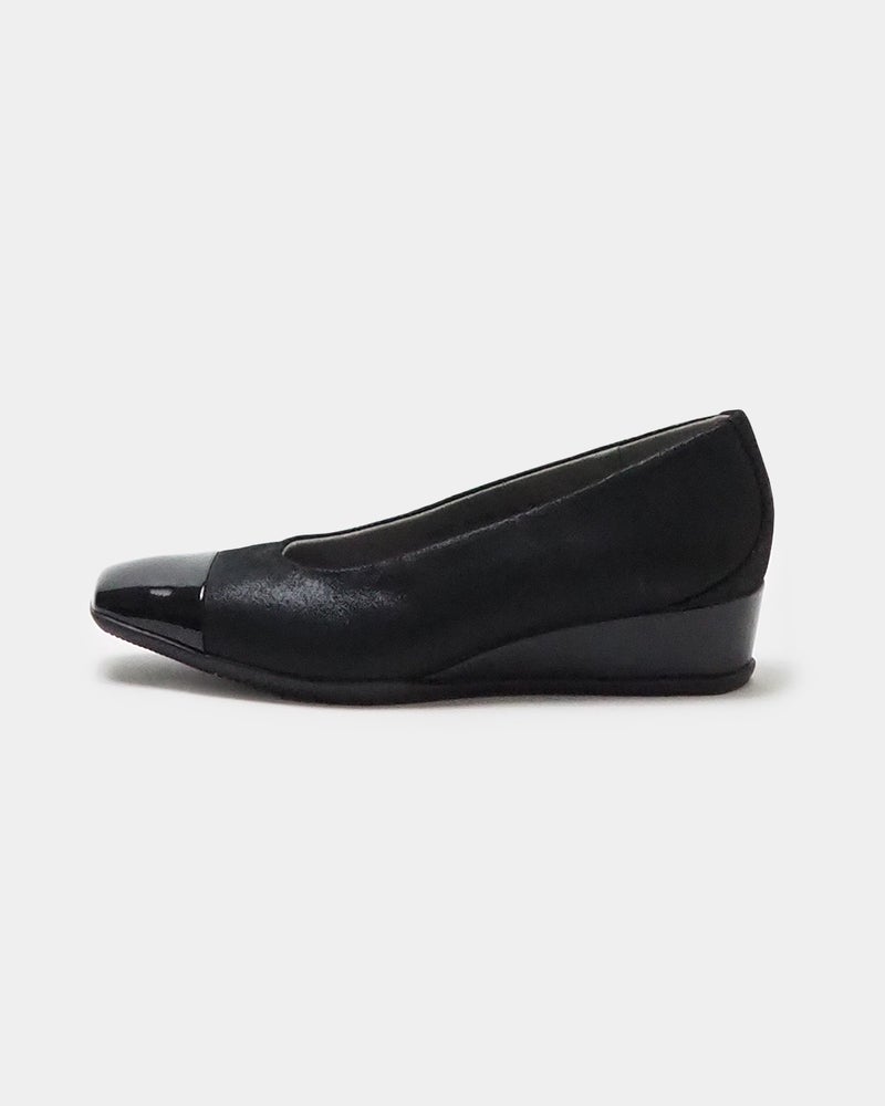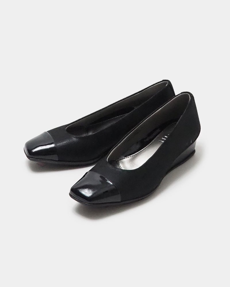 洗練されたバイカラー&ウエッジヒールの「走れる美脚パンプス」