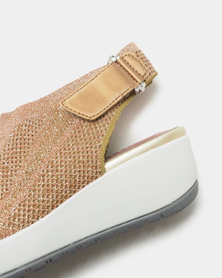 サンダルの後ろに、さりげないビジューが着いていて、とても素敵です。