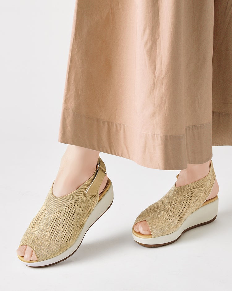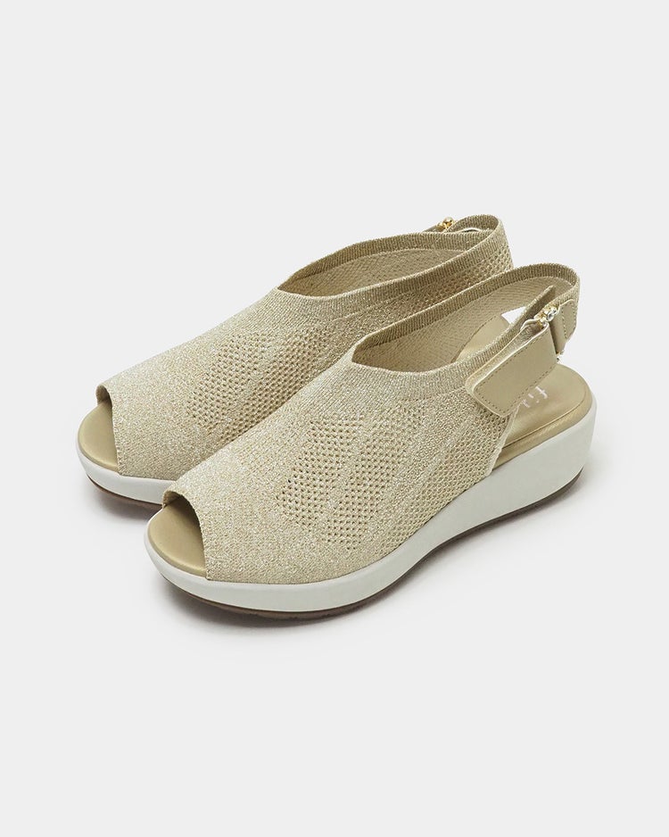 こちらのニットサンダルは、しっかりと足にフィットしホールドするためキュっと締まる感じがあるかと思います。またラメ糸のシャリ感もあるため、素足が当たる部分はお痛みを感じられたかもしれません。室内でのお試し履きのみでしたら、ご着用が難しい場合は返品や交換も承っておりますので、お客様サービスセンターまでご連絡いただけますでしょうか。