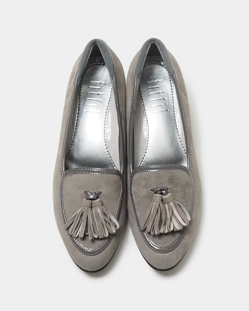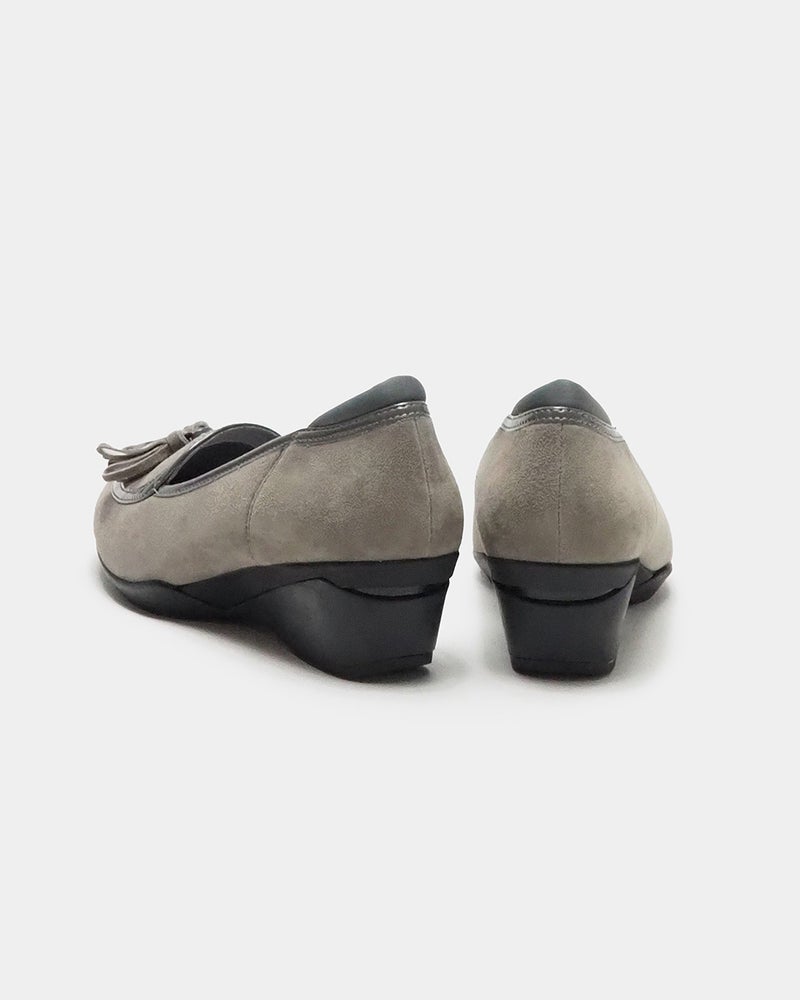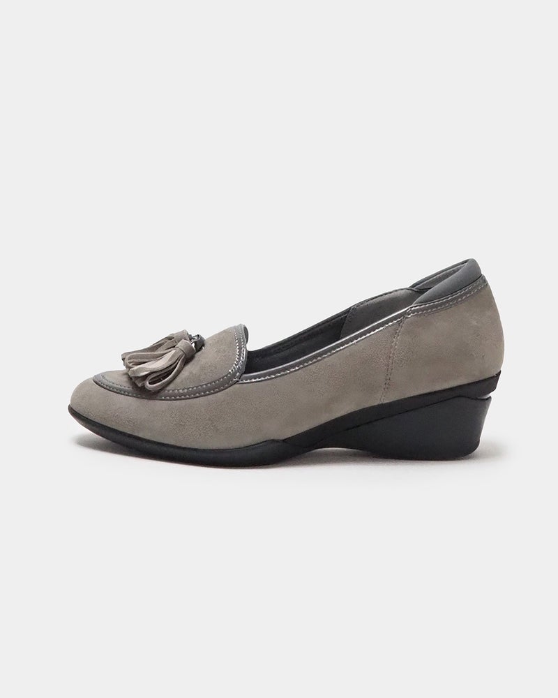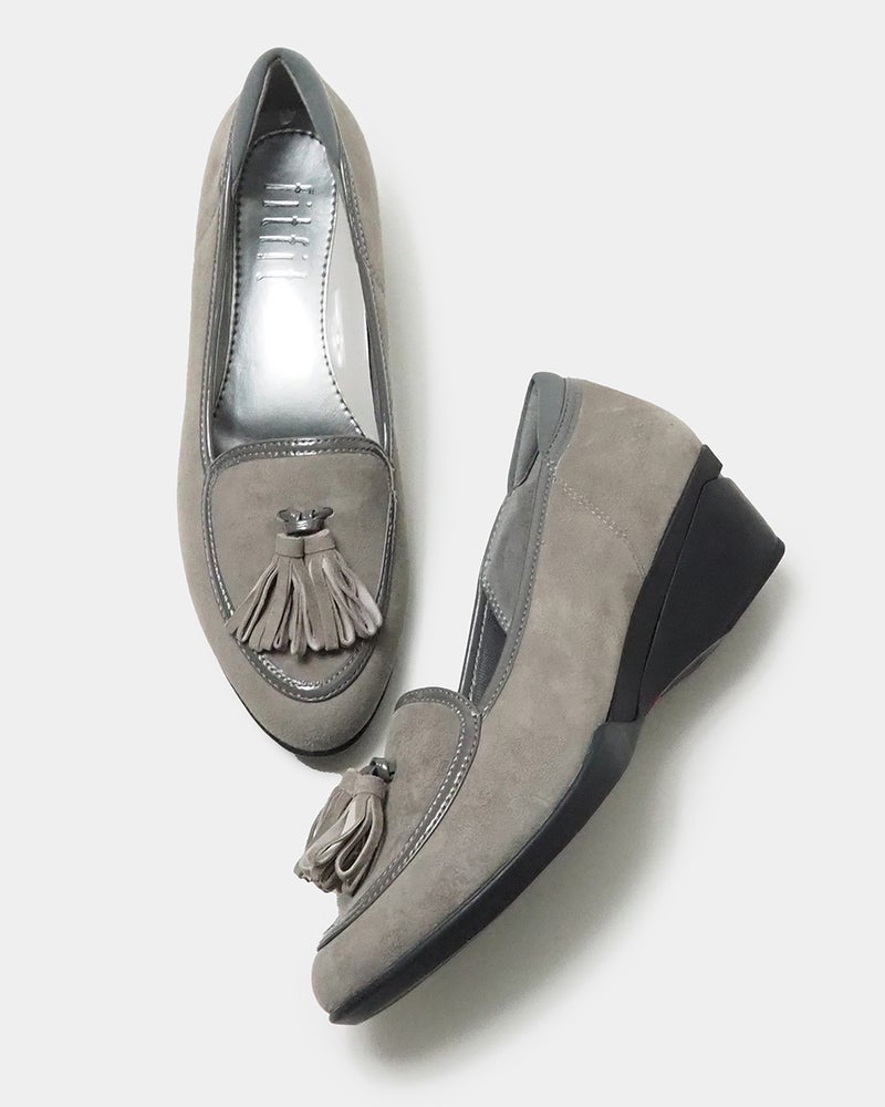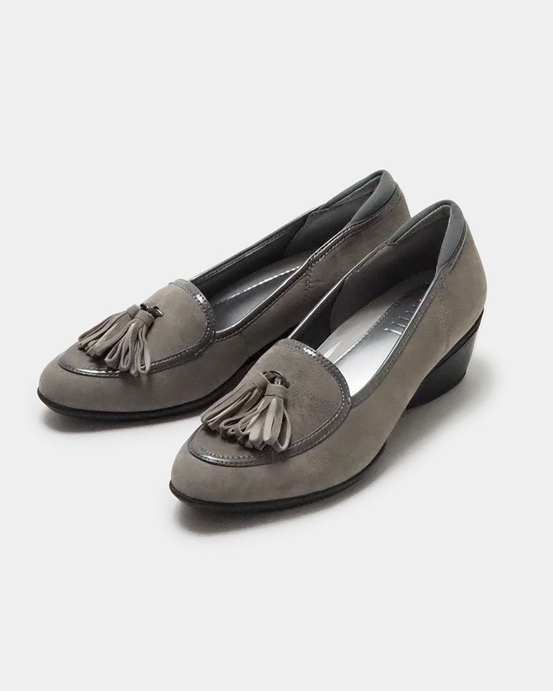 スッキリ見えの5cmヒールにタッセルを添えたクラシカルパンプニーカー