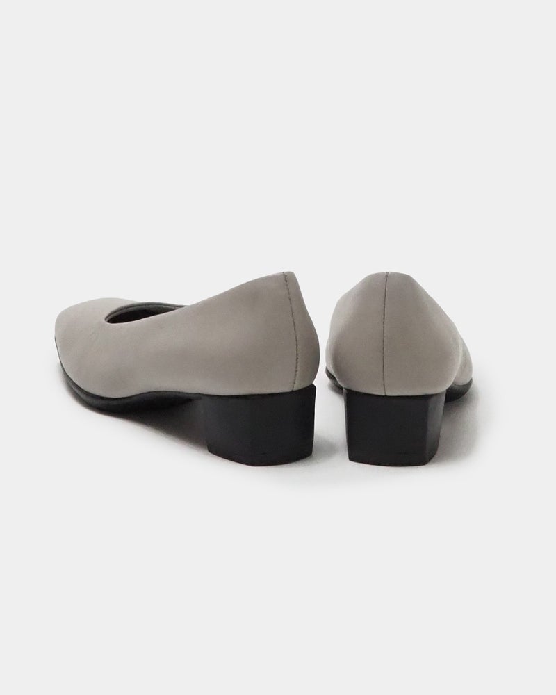 普段のサイズ:23.5㎝ 着用感:ちょうどよい - ワンヒールですが安定感がありウェッジソールのような履き心地です。スクエアヒールで指先の締め付け間もなくお仕事などで長時間履いても疲れづらいです。
