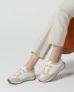 コロンとした可愛いカジュアルデザインですが、ホワイトのラメが綺麗で、幅広スニーカーでも、服と合わせた時カジュアルになりすぎないのがいいですね。