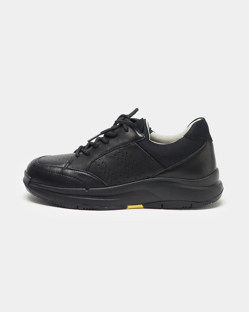 歩くことにフォーカスした機能とデザインを組み合わせたWoWスニーカー WoW(Wonder of Walk)シリーズは、日常の「歩く」を驚きに満ちた心おどるものにすることをコンセプトに、国が推奨する一日当たりの歩行数8,000歩を目指して歩くことを、快適にかつ楽しくなる機能とデザインで開発しました。 足の指をしっかり開き、地面をつかむように歩くことで蹴りだしを促すオブリークトゥの木型を採用し、アウトソールはローリング歩行を促す形状。 ミッドソールは土ふまずアーチと踵の横ブレを防ぐ3D形状になっています。 インソールは立体形状のカップインソールで、衝撃吸収力をUPさせるための厚みを持たせ、中足骨パットはより様々なアーチ形状の方にフィットするような設計になっています。 脱着のしやすい内ファスナータイプでシンプルなデザインに程良いトレンドエッセンスを感じるソール形状が映えるレザースニーカーです。