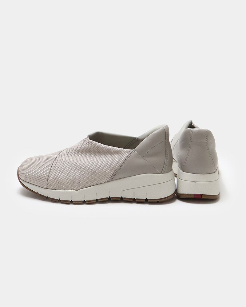 - カタログで見て綺麗なスニーカーだなと、オンライン購入のため試着していないので不安でしたが、思ってた通りのデザイン履き心地で、スニーカーと言うよりは普通の靴みたい。スリップインが、なんと言ってもとても良く色違いも購入したいぐらいです。早速旅行に履いていきます。