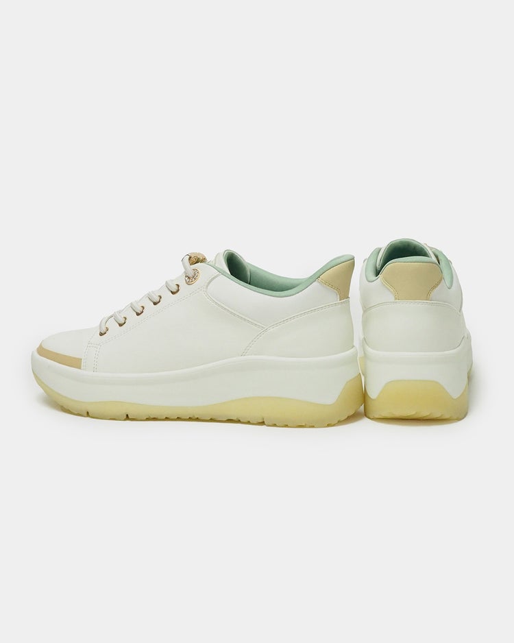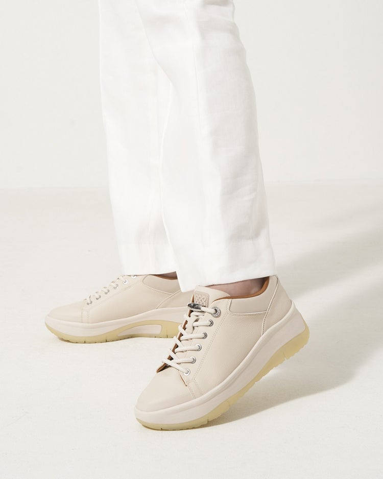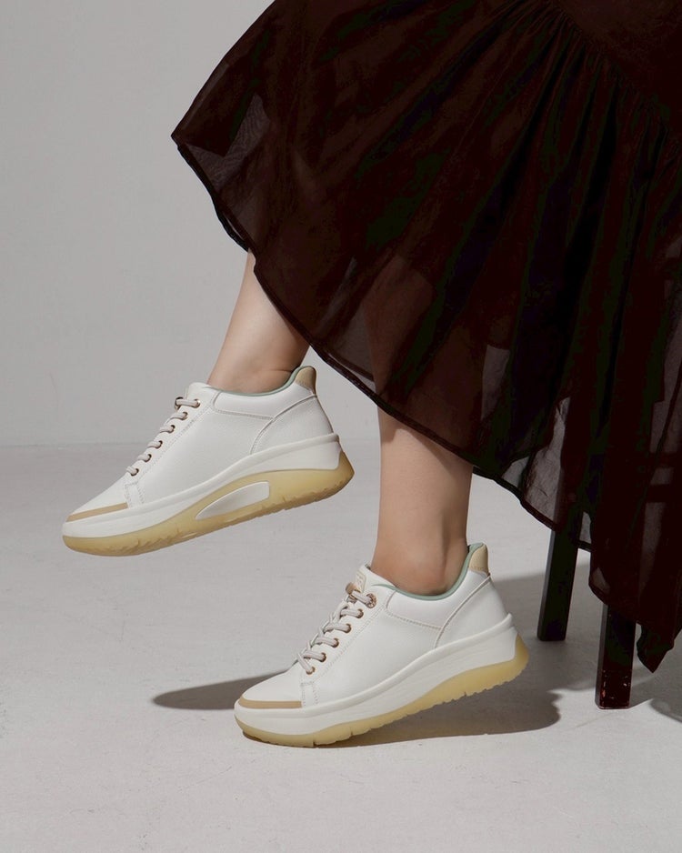 厚底でも軽量で屈曲性も兼ね備えているソールで接地面はオールラバー素材のため、タウンユースにもぴったりの一足です。