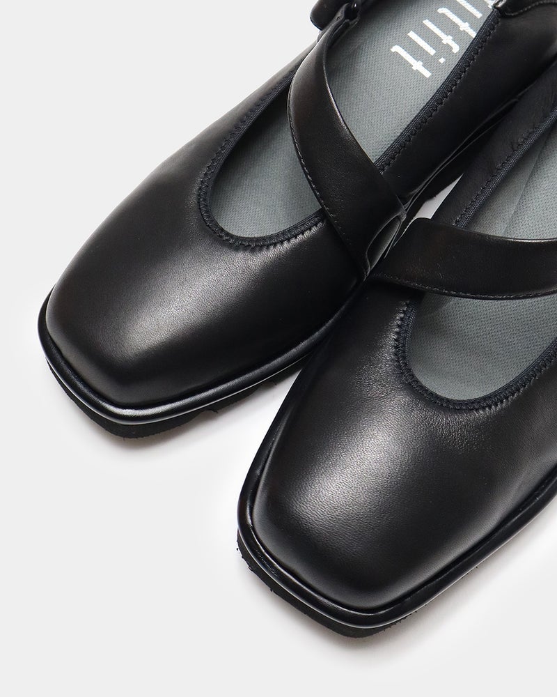 つま先はスクエアトゥで外反母趾にもやさしい内振り設計。