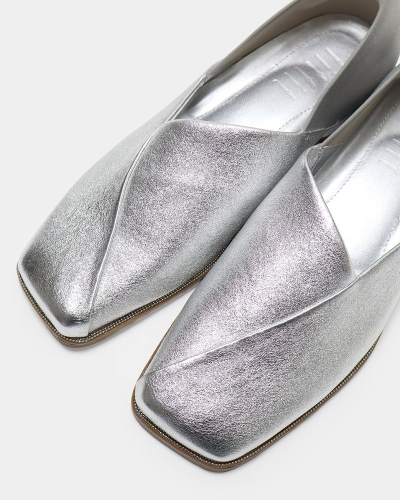 後方にはノンスリップ加工の合成皮革、前方には抗菌防臭効果のあるメッシュ素材を使用し、ストッキングでも快適に。