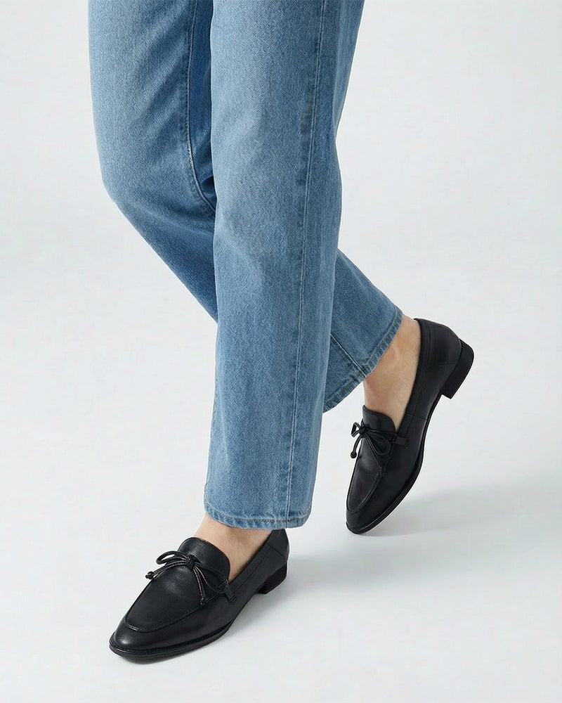 流行のテーラードスタイルにもマッチし、コーディネートにフェミニンな抜け感を添える万能ローファーです。