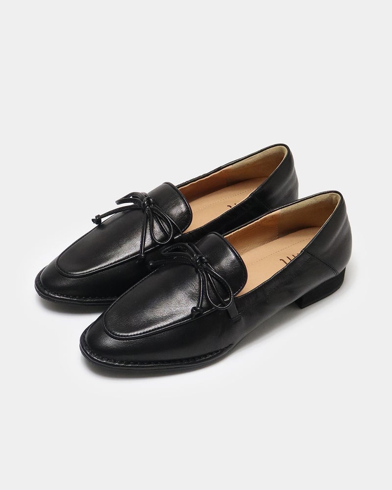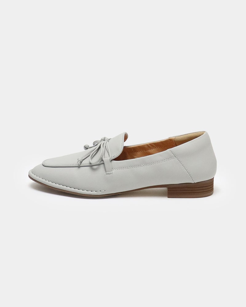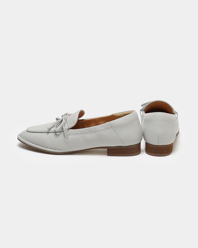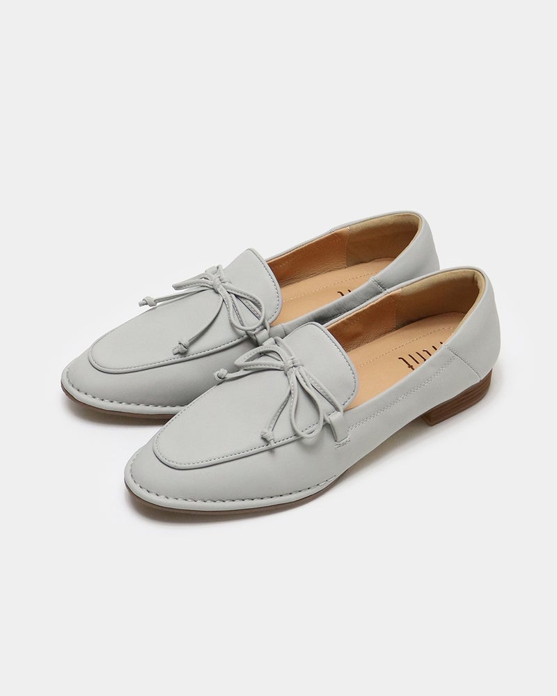マニッシュに見えがちなローファーデザインに、女性らしいやわらかさを添えた一足。