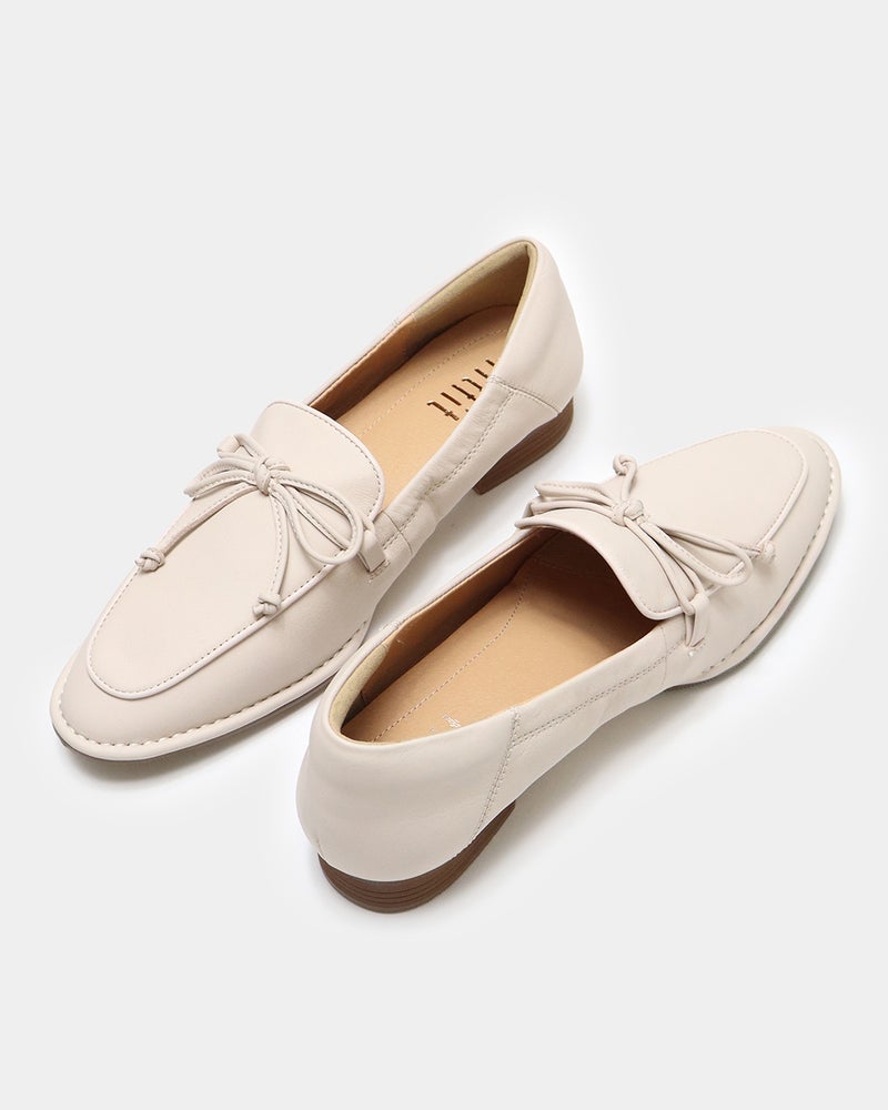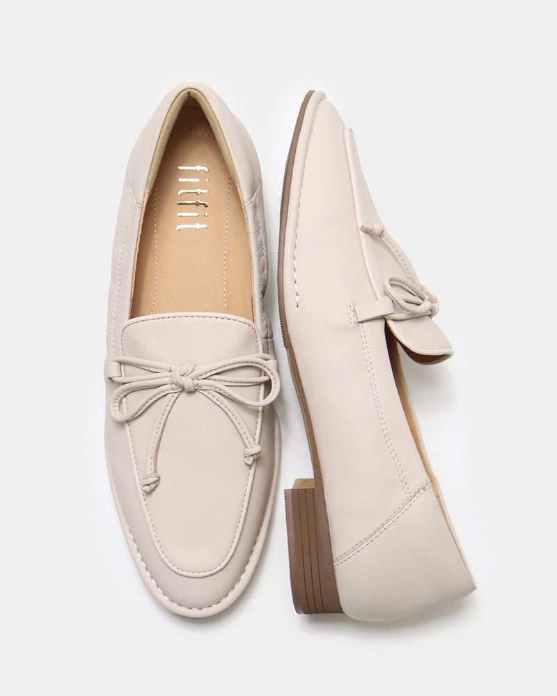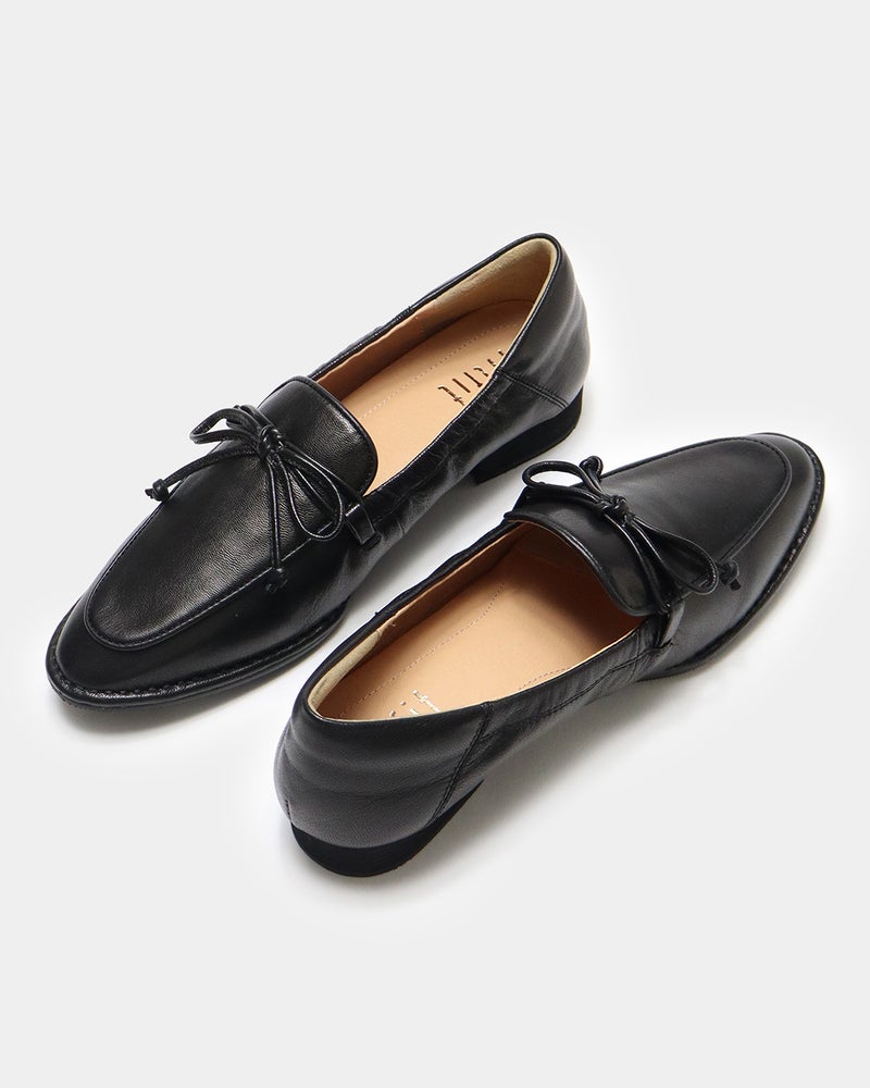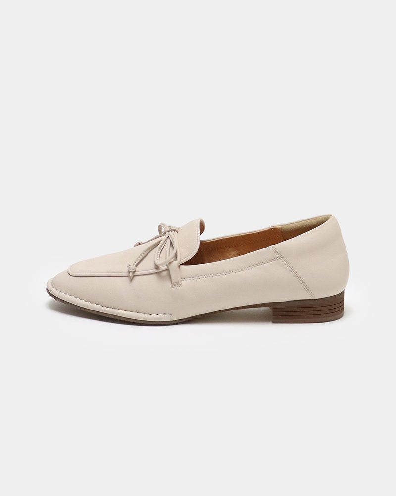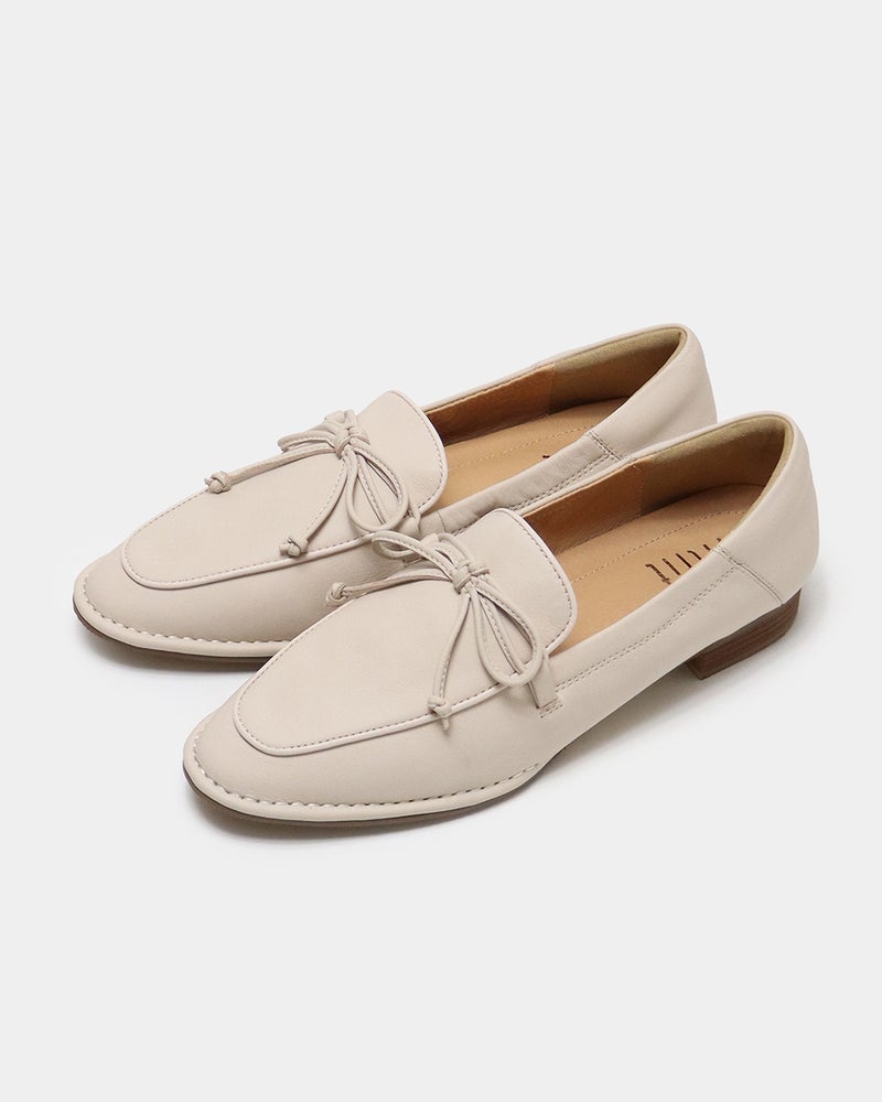 マニッシュに見えがちなローファーデザインに、女性らしいやわらかさを添えた一足。