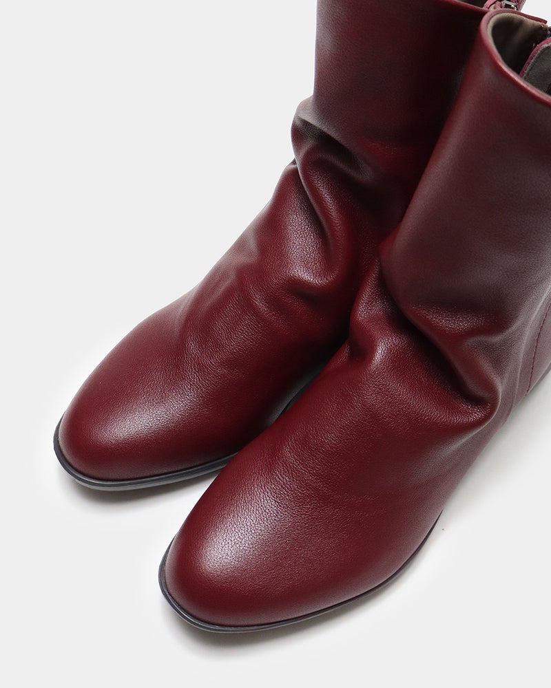- ブラック23.5cm 普通の靴のサイズで合いました。小柄でワイドパンツを良く履くので、ボリュームのある足元にしたくてアンクルブーツを探していました。牛革なのに、この軽さと柔らかさに驚きです。今までブーツで足首を固定される感じが苦手だったのですが、これはストレスレスです。