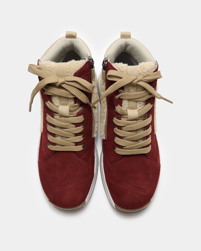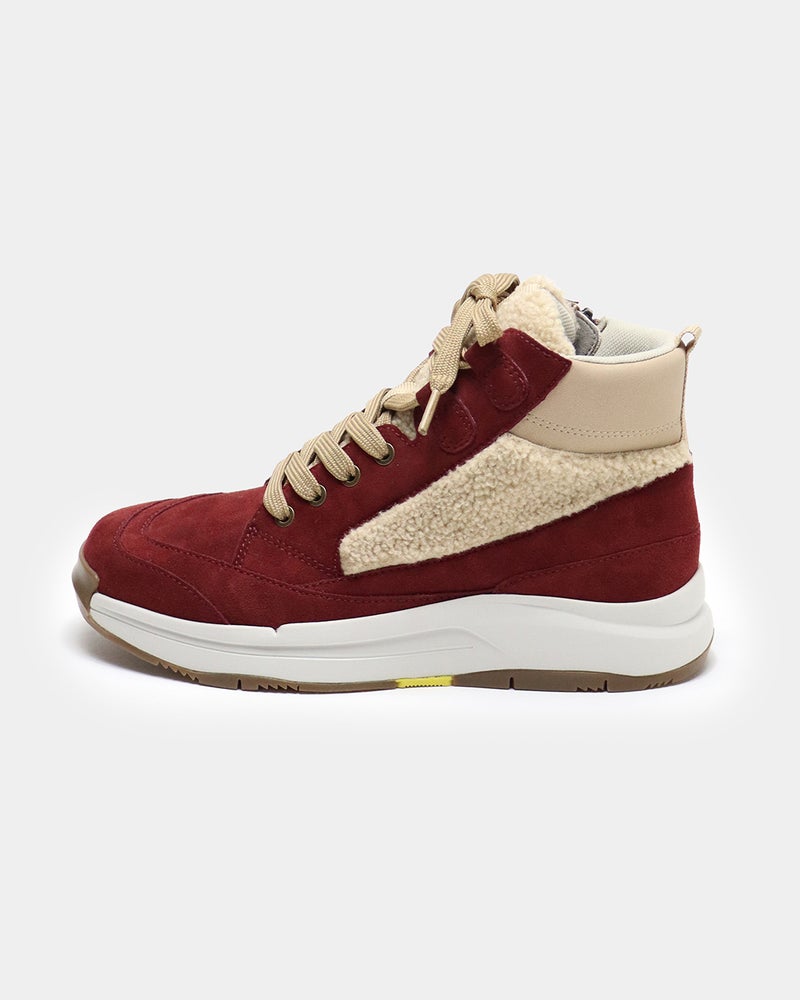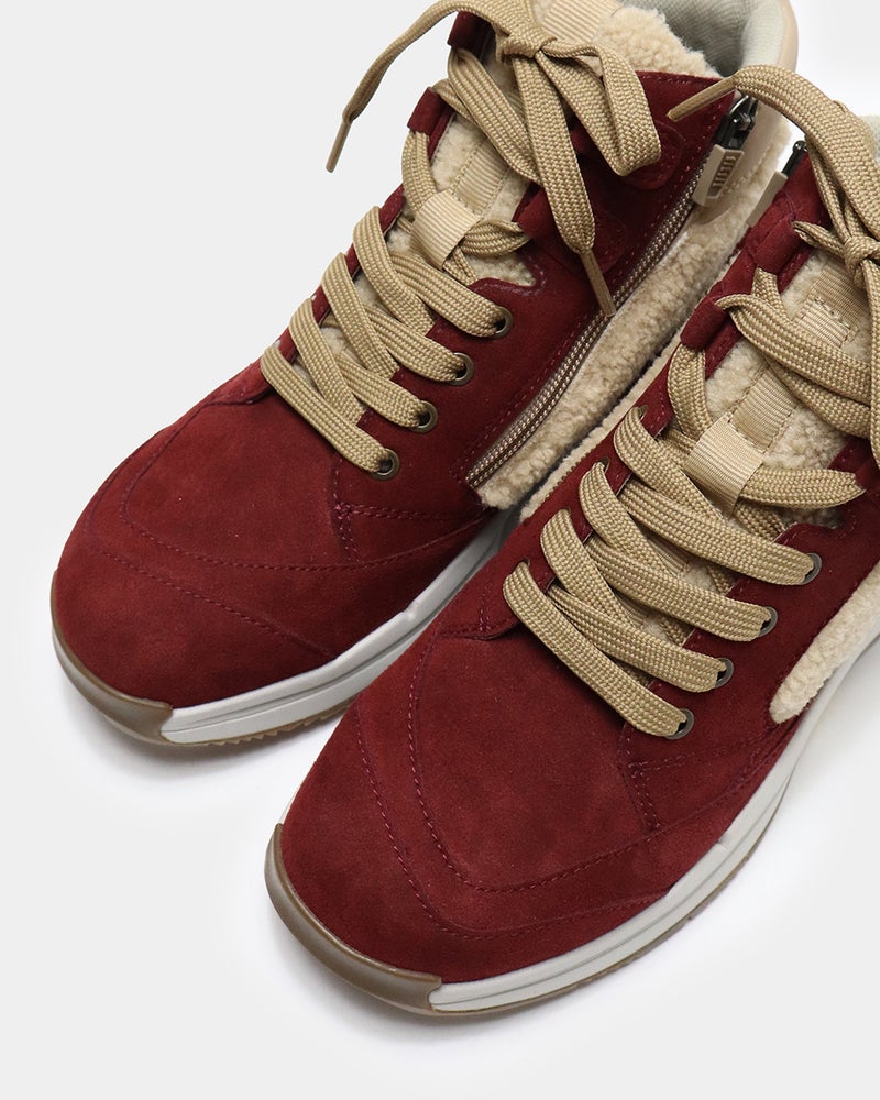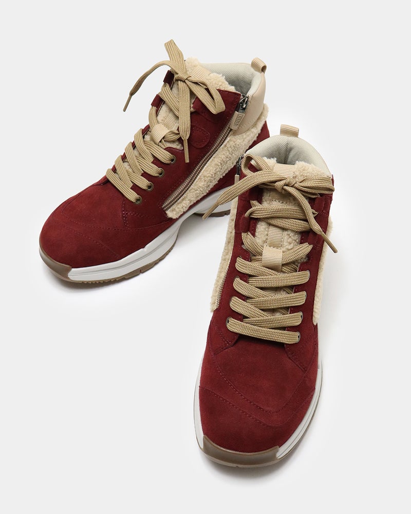スニーカーのようなラクな履き心地と、ブーツの暖かさと上品な履き心地が叶うハイカットデザインのスニーカーブーツは、秋冬の足元に程よいボリュームと抜け感を演出。