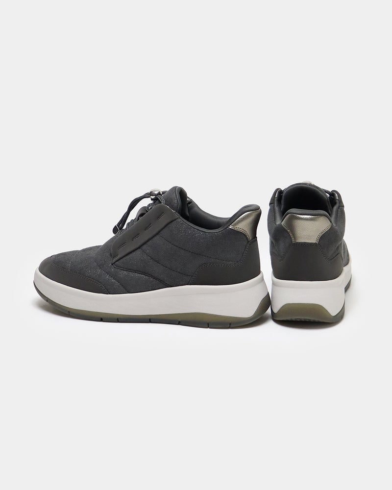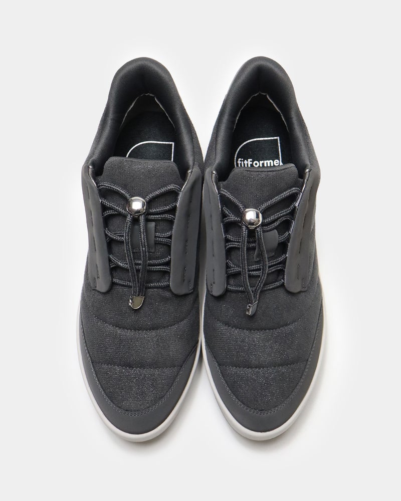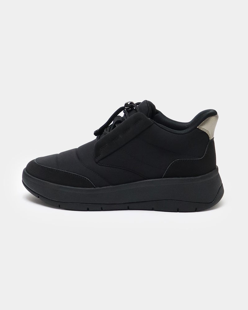 あたたかく、軽い冬仕様のハンズフリースニーカー。 寒い季節の足元を、暖かく軽やかに、そして美しく演出する、新しい撥水ハンズフリースニーカーのデザインバリエーションが登場です。 大ヒットシリーズに冬仕様の快適さをプラスし、オンオフ問わず毎日履きたくなる一足に仕上がりました。 木型はfitfitらしいつま先がすっきり見えるエッグトゥで、スマートな見た目ながら足入れは窮屈感なく、さらに1㎝のインヒールでさりげなく脚長効果も期待できます。 指周りにゆとりを持たせた設計で、長時間の着用でも快適。 アウトソールは濡れた路面でも滑りにくいようラバー配合を高めて屈曲性とグリップ力が向上し、安定感のある歩行を実現。 ヒール高は約4.5cmながら実感ヒール高は約3cmの感覚で、快適さと脚長効果を両立。 インソールには三田病院と共同開発のfitformeを搭載。 中足骨パッドや立体設計で縦アーチ・横アーチを効果的にサポート。 表面素材には起毛タイプの蓄熱繊維を採用し、体温から生じる赤外線を吸収・蓄熱・放出することで高い保温性を発揮します。 アッパーはハンズフリーでスッと履くことができすハンズフリー機能はもちろん、ふかふかの中綿入りでミッドカット仕様により足首までしっかりカバー。 見た目はスニーカーのように軽快で、ラメ入りドローコードや丸みのある留め具をアクセントにして、暖かさとおしゃれを両立しました。 ダウンや中綿コートなど冬のカジュアルスタイルに相性がよく、スポーティーすぎず洗練された雰囲気を纏い、寒い日でもすっきり美脚を叶える大人の冬スニーカーです。 ※完全防水ではございません。 ※濡れた路面では乾いた路面よりも滑りやすくなります。雨天などで濡れた路面を歩く場合は、転倒などの危険がありますので、十分ご注意ください。