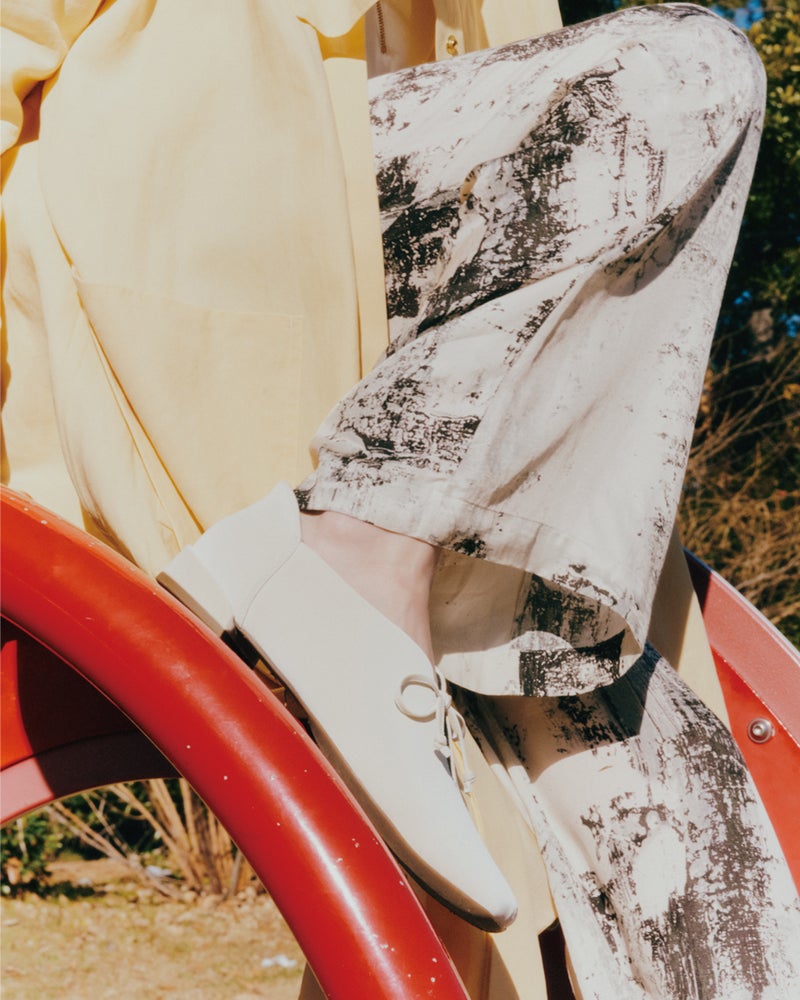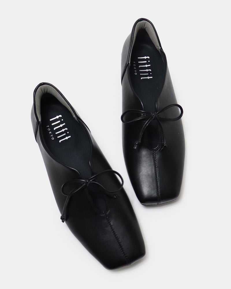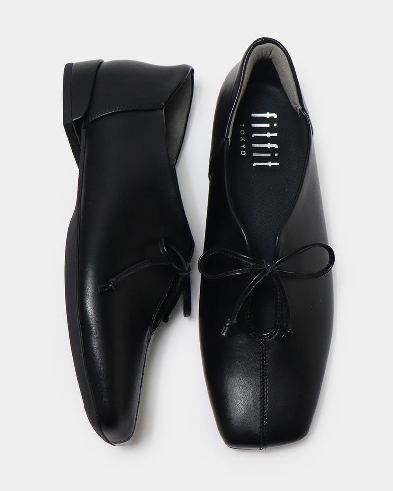 ゆとりのあるつま先と包まれる安定感。 かかとのパッドが靴擦れを軽減し、優しい履き心地を叶えるストレッチフラットシューズが登場。 トレンド感のあるワイドスクエアトゥで快適なのに上品なデザインに仕上げた一足です。 「かかとが抜けやすい」というお声が多いバレエシューズの課題に、踵のホールド感を大幅に改善したデザインに。 柔らかさを保ちながらも、しっかりと踵を包み込む形状を追求しました。 また、親指部分はわずかに高さを持たせた木型設計により、シャープな見た目ながら足指がのびのび動く快適な履き心地を実現しています。 約3.0cmのヒール高で完全なフラットではないため、自然な蹴り出しがしやすいのも特長です。 アウトソールは前方に3Dモールドを施し、安定感・軽さ・屈曲性・グリップ性を向上。 踏みつけ部分にはEVAクッションを内蔵し、地面からの衝撃をしっかり吸収します。 インソールには、アーチを支え衝撃を和らげる厚みのあるカップインソールを採用し、踵がわずかに沈み込む構造で重心が安定。 一日中履いても疲れにくく、踵の収まりの良さもポイントです。 アッパーは撥水仕様で、内側が長く外側が短い柔らかなパーツを使用し、靴擦れしにくく踵抜けしない設計に。 甲のスリットと細リボンが女性らしい抜け感を演出し、さりげないシャーリングゴムでフィット感の調整も可能です。 オンオフ問わず活躍し、きちんと感と歩きやすさを両立した日常使いの定番になるフラットシューズです。 ※完全防水ではございません。 ※濡れた路面では乾いた路面よりも滑りやすくなります。雨天などで濡れた路面を歩く場合は、転倒などの危険がありますので、十分ご注意ください。