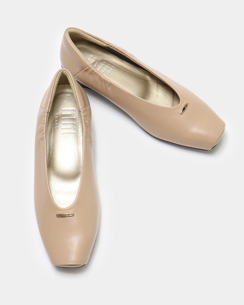 「きちんと見え」と「スニーカー級のラクさ」を毎日使い。 メタルパーツがデザインポイントの毎日気負わず履ける晴雨兼用バレエシューズが登場。 ヒールに頼らずとも自然と背筋が伸び、足取りが軽くなる設計で、一日を前向きに過ごしたい大人の女性に寄り添います。 指まわりにゆとりと高さを持たせた独自nの木型をベースに、ヒール高を抑えつつスマートに見えるバランスへ調整。 丸みのあるスクエアトゥが足型を選びにくく、外反母趾も目立ちにくい設計です。 アウトソールは安定感のあるラバー一体式ながら、見た目はすっきりしたワンヒール。 ウェッジソールの安定性と軽やかな印象をあわせ持ち、3D構造のふまず設計が歩行時のブレを抑えます。 踵と前足部にはEVAクッションを内蔵し、硬い床や石畳でも衝撃を吸収。 インソールは後足部で中足骨と土踏まずをしっかり支え、前足部には足当たりの良いクッションと抗菌防臭メッシュを採用し、長時間歩いても疲れにくい快適さを実現しています。 撥水ストレッチ素材のアッパーは足当たりのやさしいシームレス仕様で、深めの設計とシャーリングゴムの履き口が脱げにくくフィット。 サイドのVカットが甲を美しく見せ、さりげないメタルパーツが上品な華やかさを添えます。 ニュートラルなカラー展開と約3.0cmのヒール高で、日常使いからオケージョンシーンまで幅広く活躍するfitfitらしい美意識を体現した一足です。 ※完全防水ではございません。 ※濡れた路面では乾いた路面よりも滑りやすくなります。雨天などで濡れた路面を歩く場合は、転倒などの危険がありますので、十分ご注意ください。