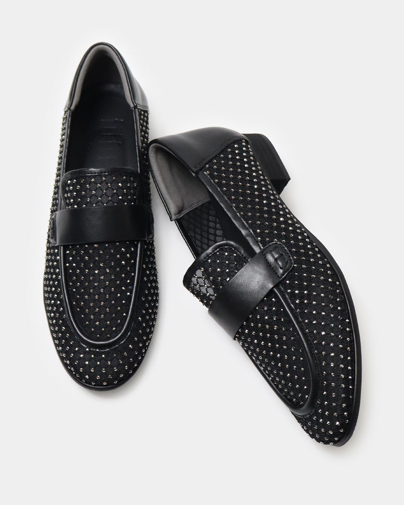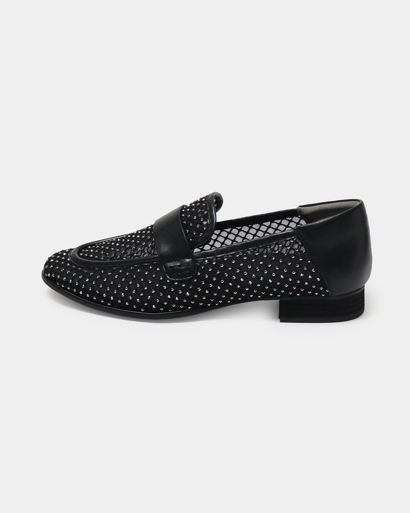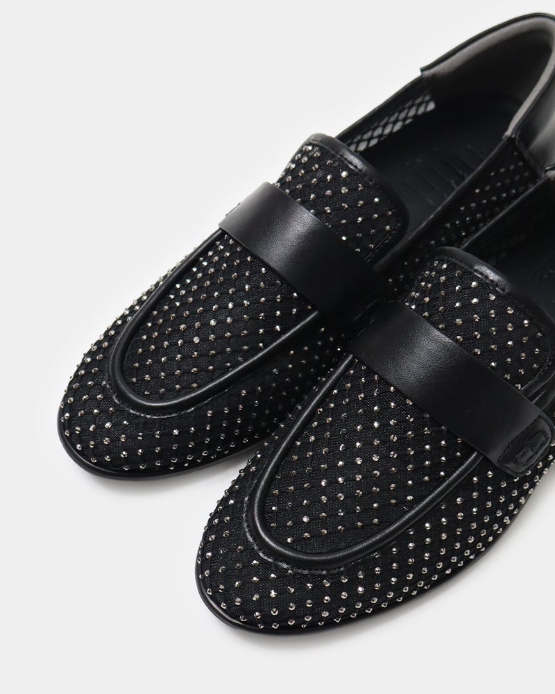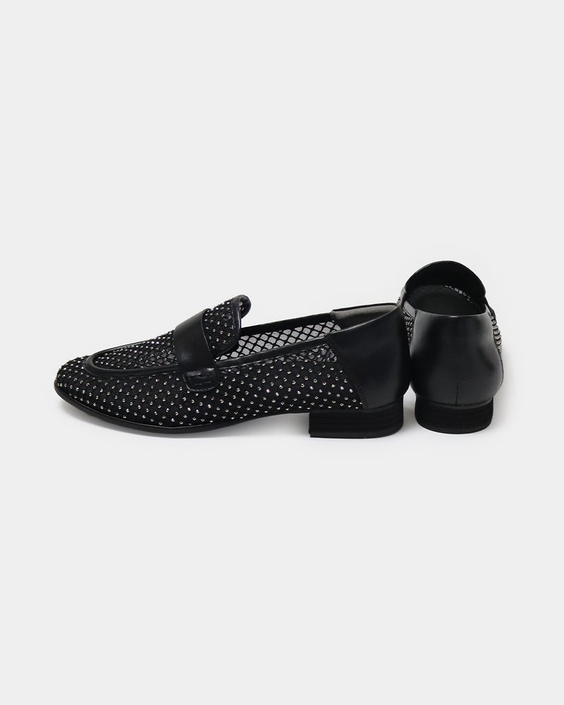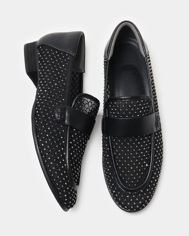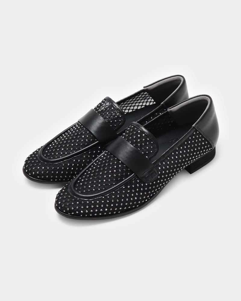 パンツにもスカートにも合わせやすく、ラインストーンのきらめきと華やかさと快適性を両立した、ときめきローファーです。